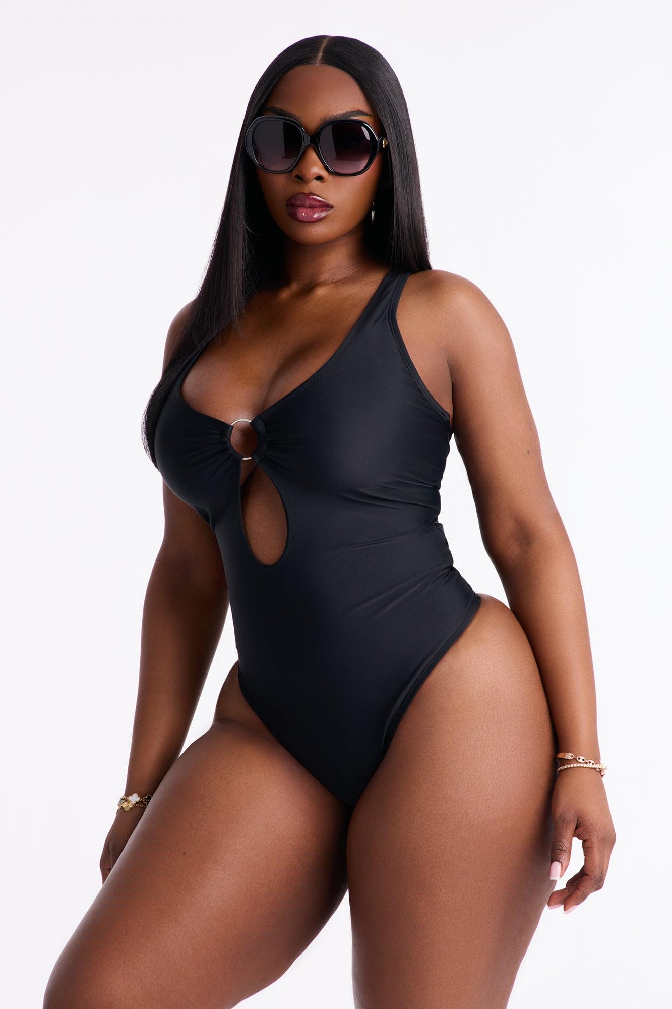 Eva O Ring Cutout 1 Piece Swimsuit - Black Female