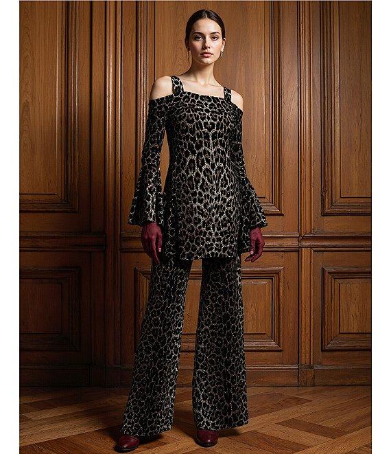 From Eva Varro, these pants feature: Knit fabrication Leopard print Elastic waistband Wide leg silhouette Pull-on construction Approx. 31" inseam Polyester/spandex Hand wash Made in the USA.