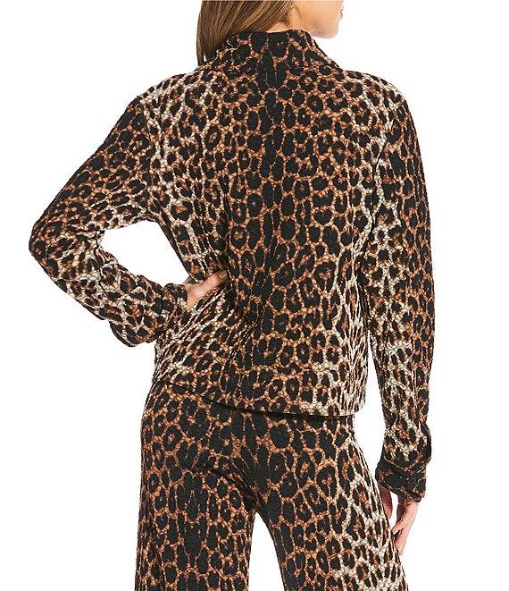 From Eva Varro, this jacket features: Brooke pebbles print Pilot silhouette Notch collar neckline Long sleeves with snap cuffs Two horizontal front pockets with zippers Snap front closure Approx. 23" length Acetate/spandex Hand wash Made in the USA.
