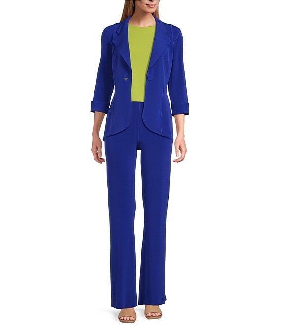 From Eva Varro, these pants feature: Knit fabrication Flat front High rise Elastic waist Bell bottom Pull-on construction Approx. 32" inseam Polyester/spandexHand wash Made in the USA.