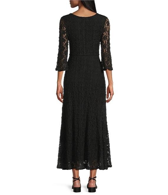 Eva Varro Lace Knit V-Neck 3/4 Bell Sleeve A-Line Maxi Dress