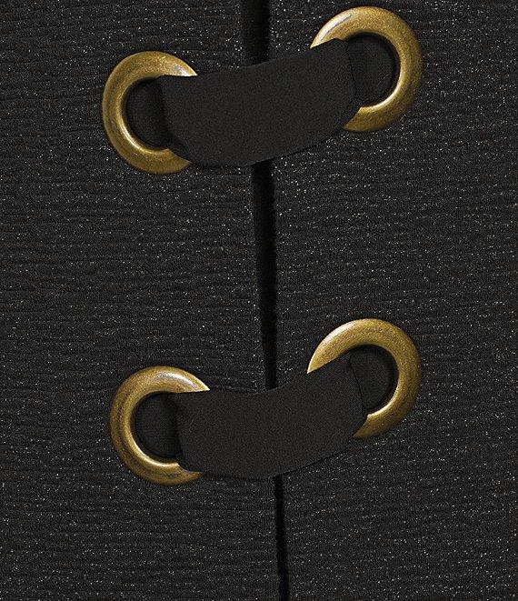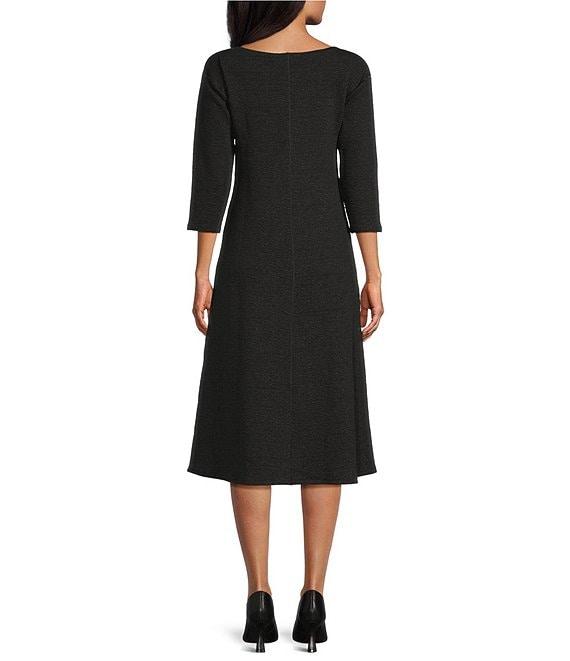 Eva Varro Metallic Jacquard Boat Neck Gommet Detail 3/4 Sleeve Midi Dress