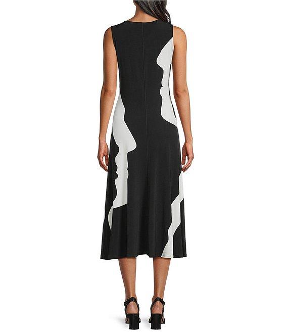 Eva Varro Profile Print Crew Neck Sleeveless A-Line Midi Dress