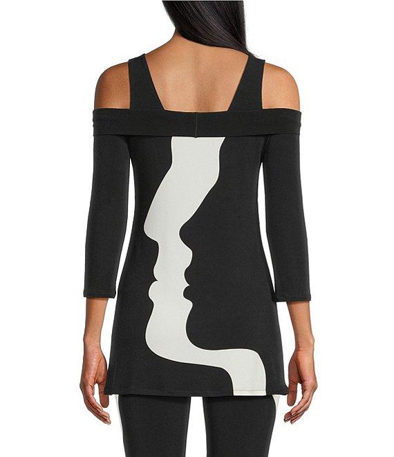 Eva Varro Profiles Print Coordinating Off-The-Shoulder 3/4 Sleeve Tunic