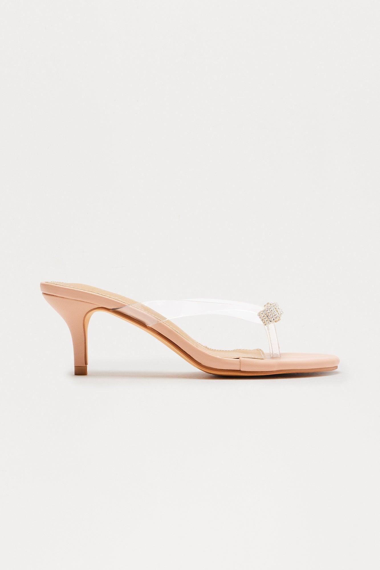 Evanda Rhinestone Bow Clear Thong Mules - Nude Female