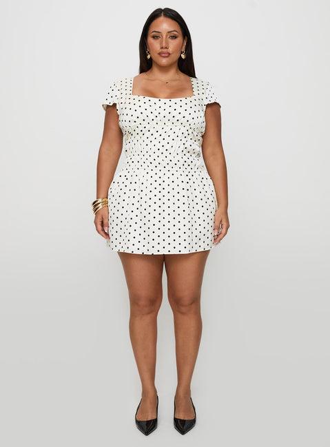 Evangelie Ruched Mini Dress White Polka Curve