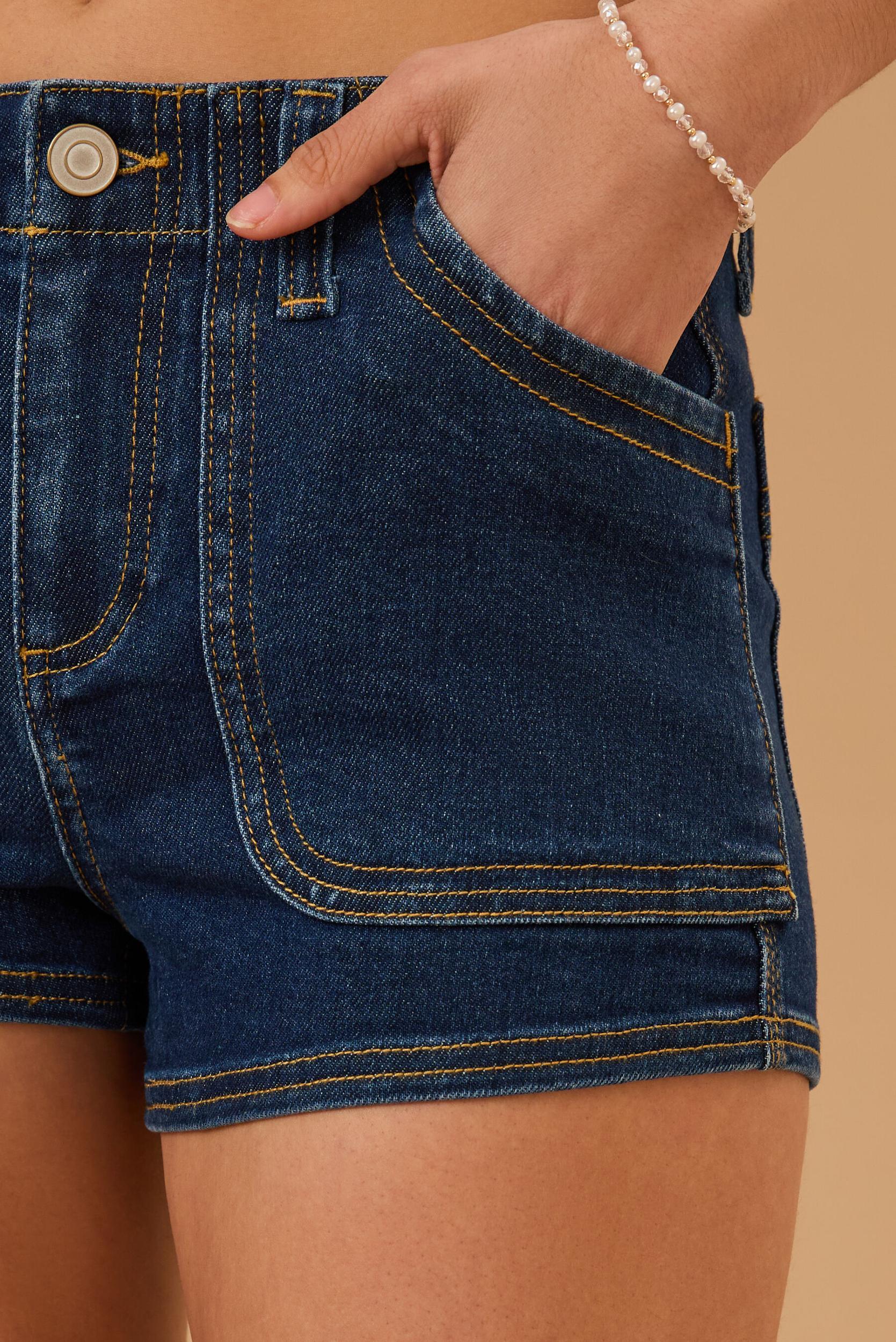 These dark wash denim shorts combine timeless style with a modern twist. The clean hem adds a polished, minimalistic touch, while the subtle seam detailing enhances the design with an extra layer of sophistication.