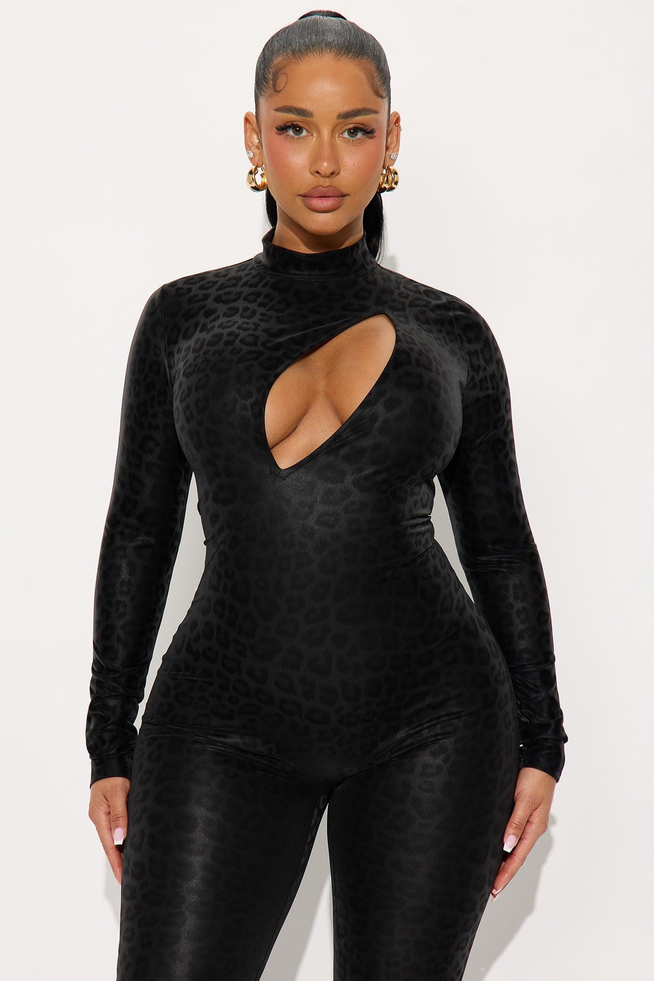 Evelyn Cutout Leopard Jumpsuit - Black Female
