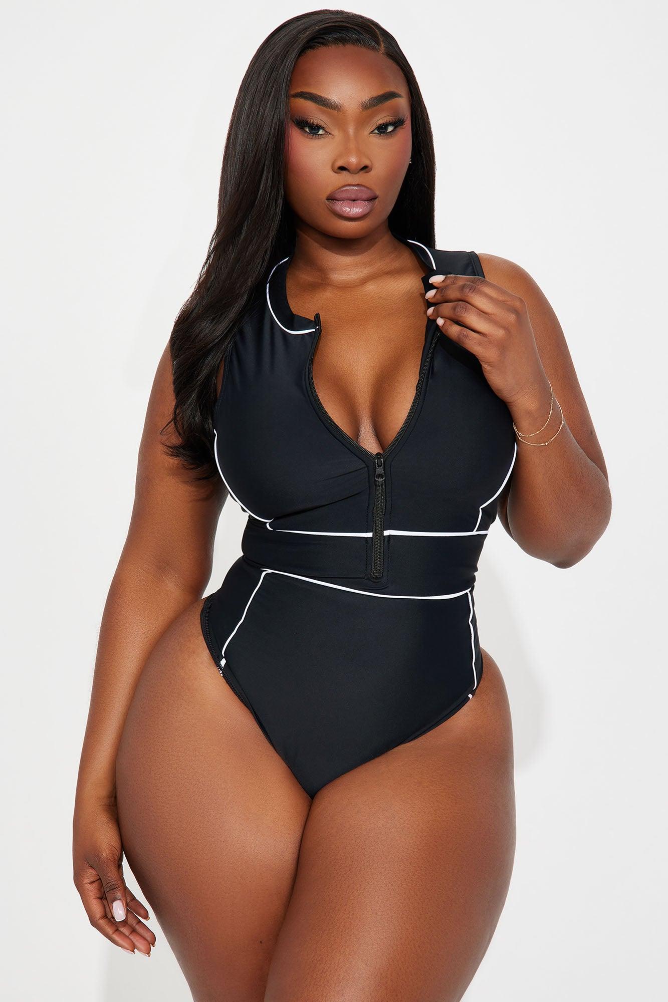 Evelyn II Zip Up 1 Piece Swimsuit - Black/White