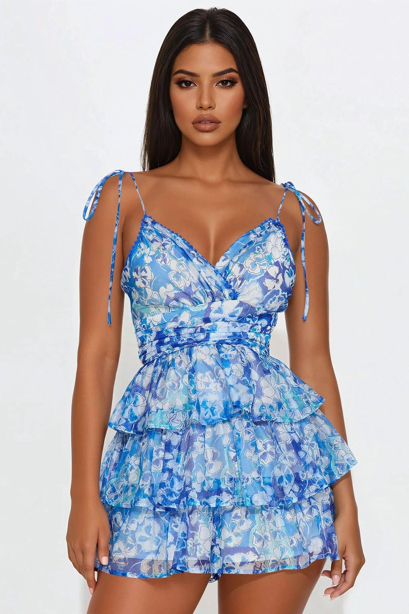 Evelyn Ruffle Romper - Blue/combo