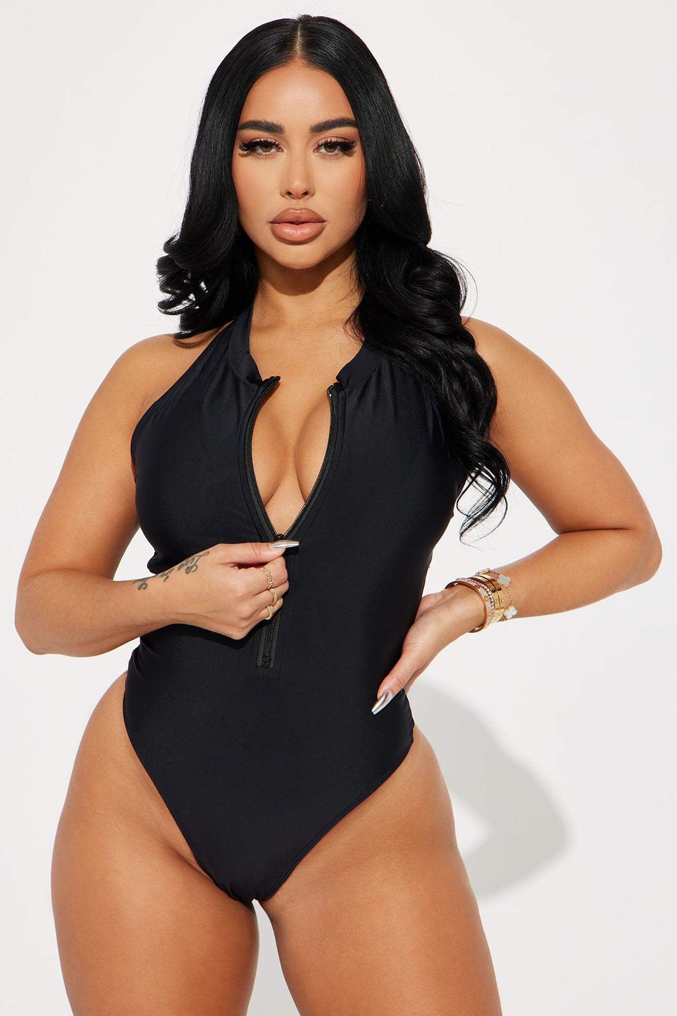 Available In Black, Blue/combo, Fuchsia, Lime, Multi Color, Pink/combo, Red And White. 1 Piece Ensemble Swimsuit Front Zipper High Cut Leg Final Sale Shell: 82% Polyamide 18% Spandex Lining: 95% Polyester 5% Spandex Imported California Proposition 65WARNING: Cancer and Reproductive Harm - www.P65Warnings.ca.gov.