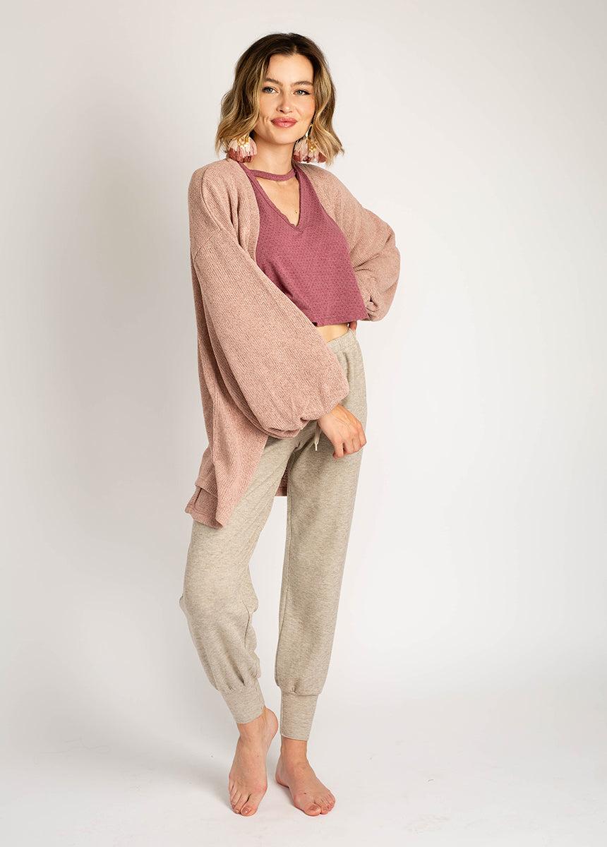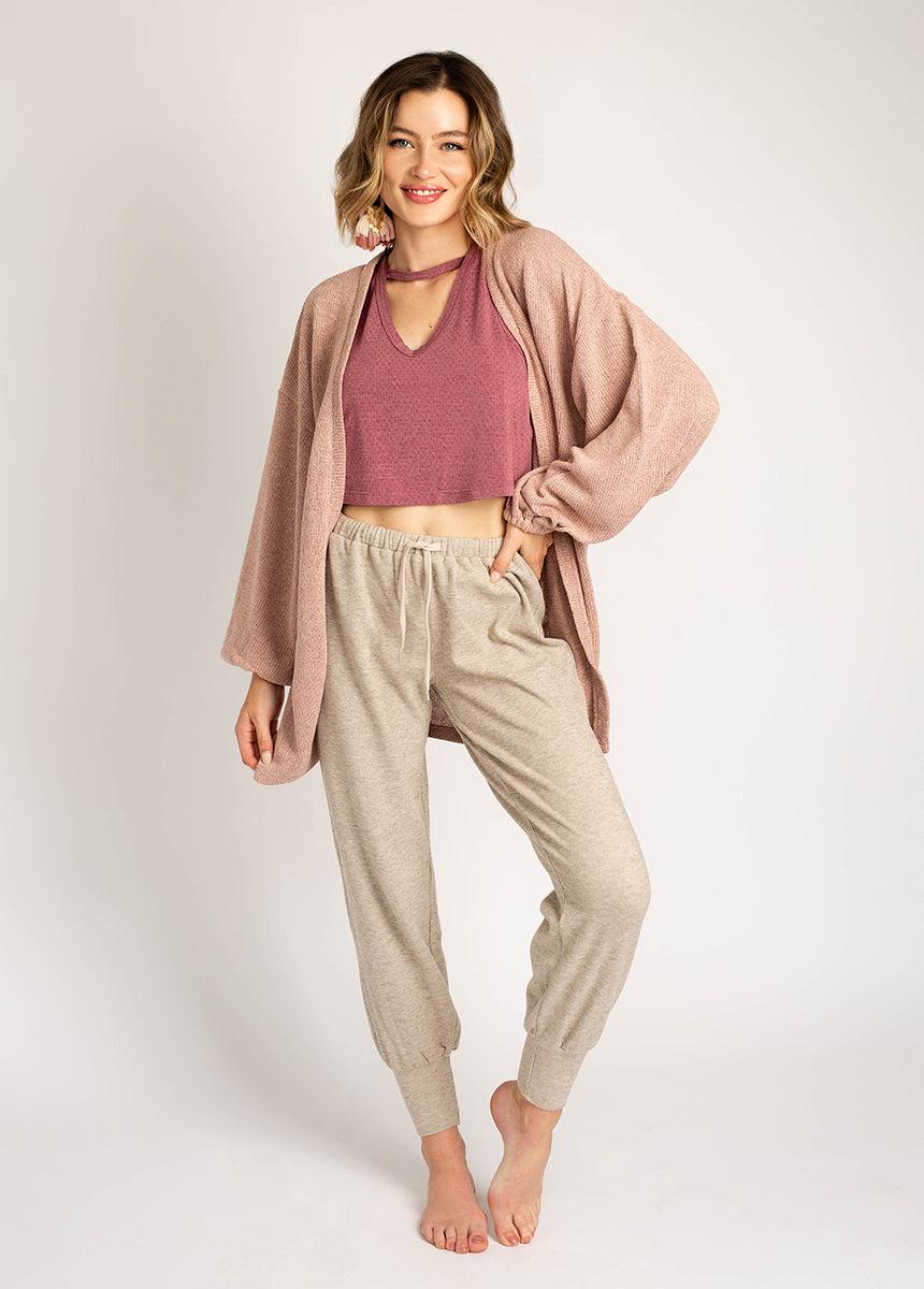 Get ready to be comfy and stylish in the Evelynne Set in Warm Multi. This versatile set allows you to mix and match or wear all together for a go-to outfit. Upgrade your wardrobe with this must-have set. Pants Ankle Cuff Functional drawstring High waist Elastic waistband 72.5% Polyester, 21% Rayon, 6.5% Spandex Hand wash only, line dry Top Front strap Relaxed fit V-Neck Deep armhole Racerback 60% Polyester, 32% Rayon, 8% Spandex Hand wash only, line dry Duster Longer length Bubble sleeve Drop shoulder 100% Polyester Hand wash only, line dry Model is 5'8 wearing a size XS