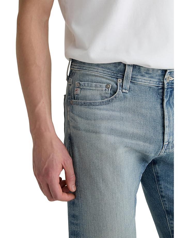 Feel the flattering touch of style wearing AG® Jeans Tellis Modern Slim Jean. It features ultra light denim fabric for increased breathability, light blue wash with whiskering, and Hi-recovery fit. A tapered leg opening, mid-rise waist, and classic five pockets add to the style while loop waistband with zip-fly button closure provide secure fit to the size.