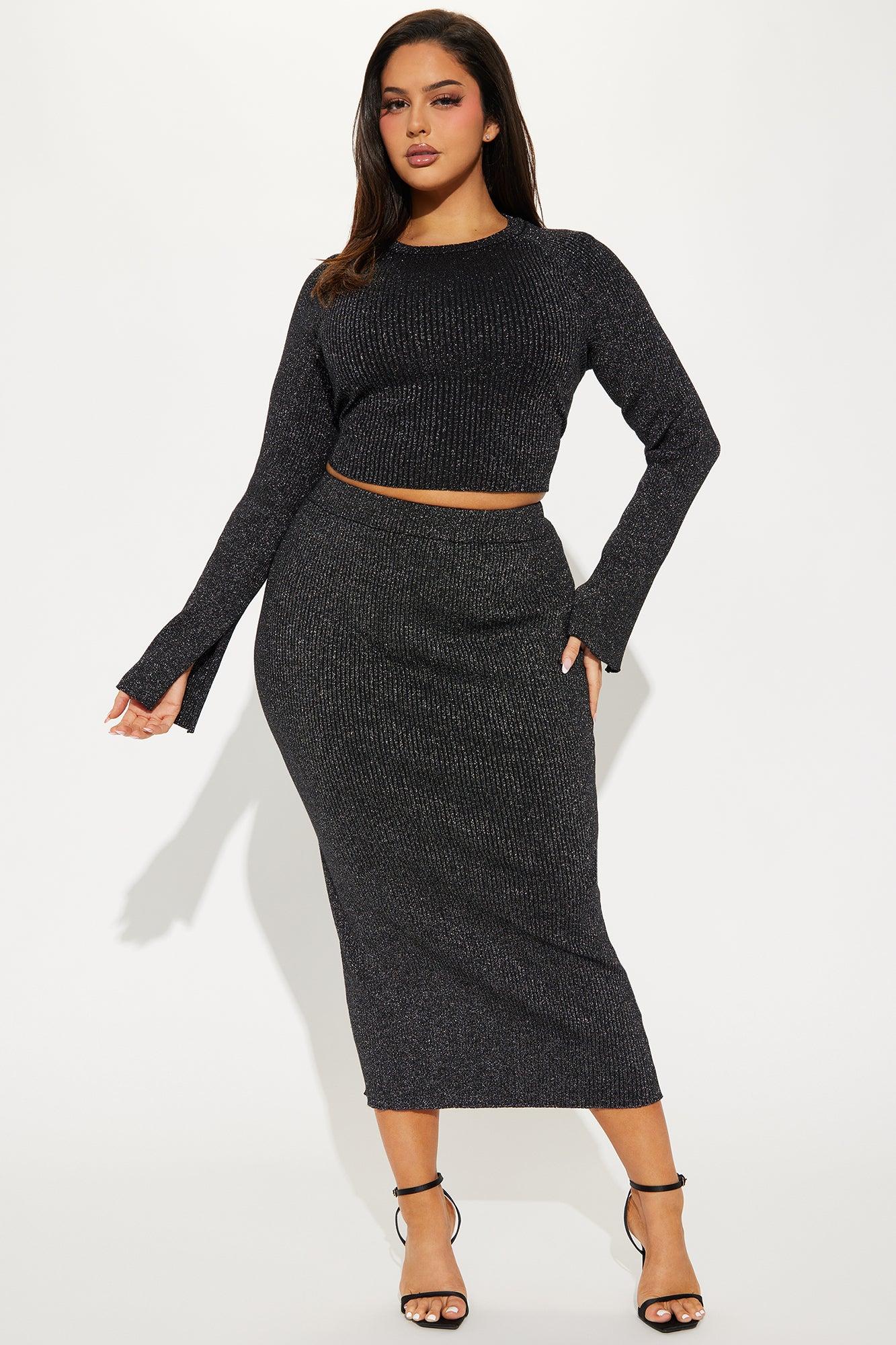 Everlee Sparkle Skirt Set - Black/Silver