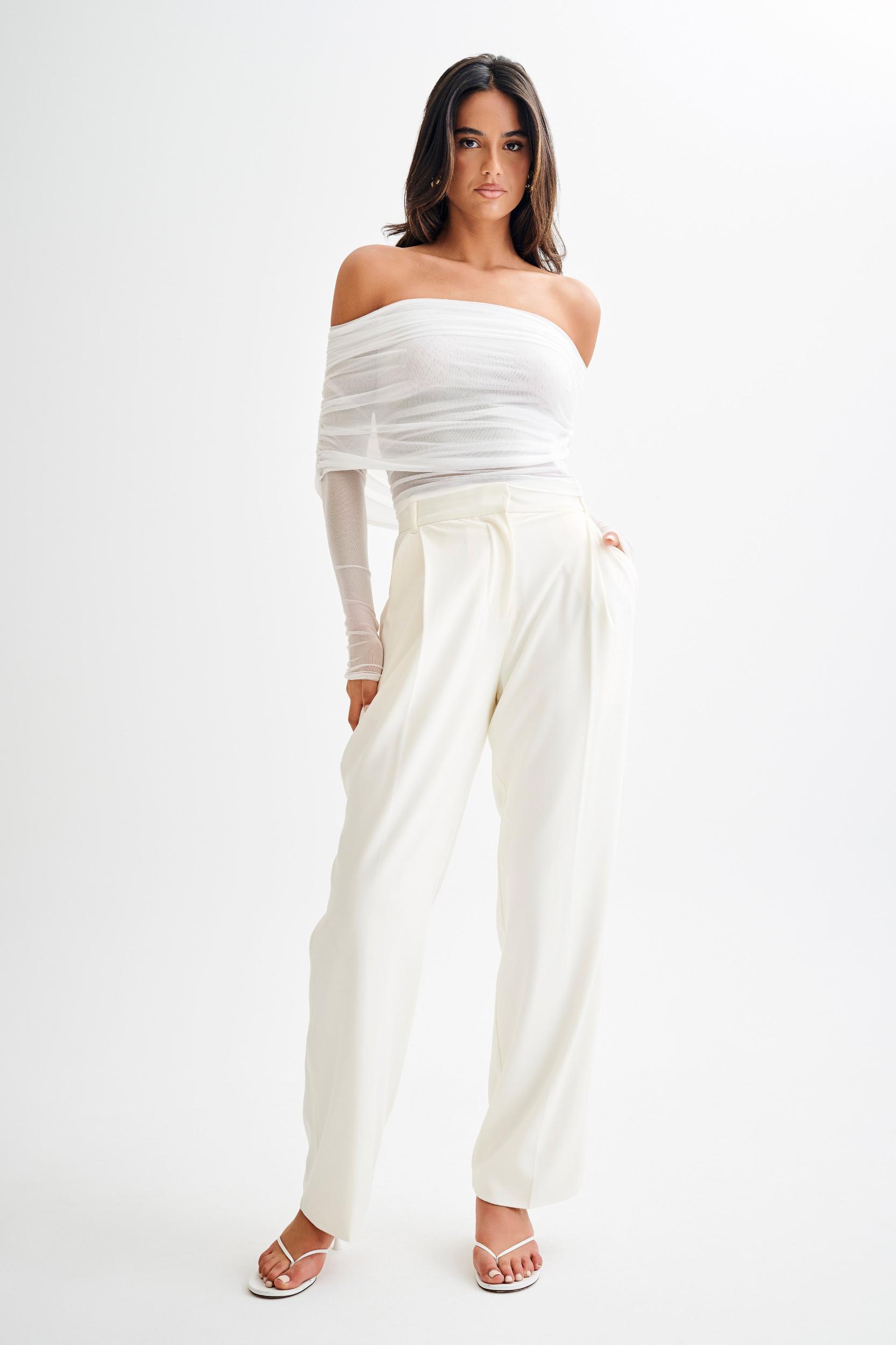 Elegant showstopper.The EVERLY Sheer Mesh Off Shoulder Top exudes elegance and modern style. This top features an off-the-shoulder design and long sleeves, creating a sophisticated silhouette. Made from delicate mesh fabric, it offers a sheer look with a ruched overlay that adds texture and visual interest. The longline cut ensures a flattering fit, making it a versatile piece for both casual and dressy occasions. Embrace chic fashion with the Everly Sheer Off Shoulder Mesh Top.
