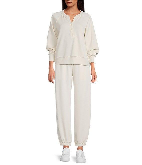 From Every, this sweatshirt features: Knit fabrication Henley neckline Long sleeves Button front closure Approx. 24" HPS in length Turn garment inside out before machine washing on cold with like colors. Only use non-chlorine bleach, if needed. Tumble dry low. Iron on lowest setting, if needed. Do not dry clean Imported.