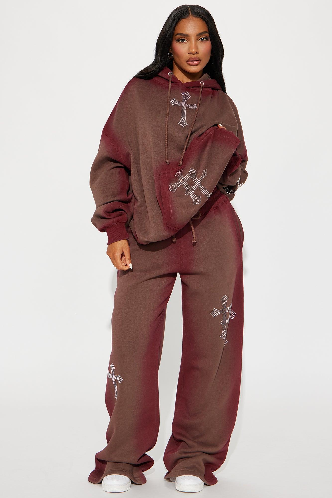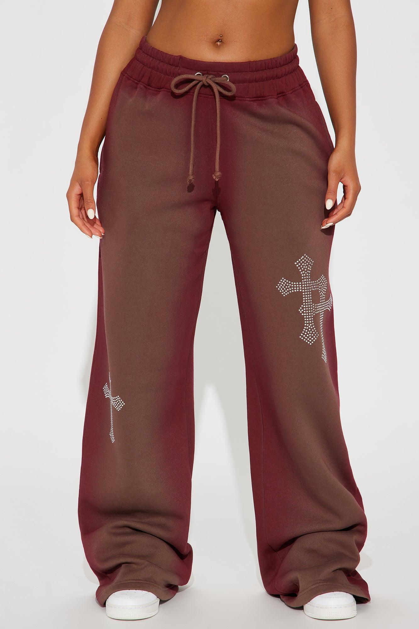 Available In Brown/combo. Wide Leg Pant Elastic Waistband Drawstring Rhinestone Detail Pair Back To "Every Day's A Good Day Washed Hoodie" Disclaimer: Due To The Specialized Dye Process, Each Garment Is Unique 60% Cotton 40% Polyester Imported
