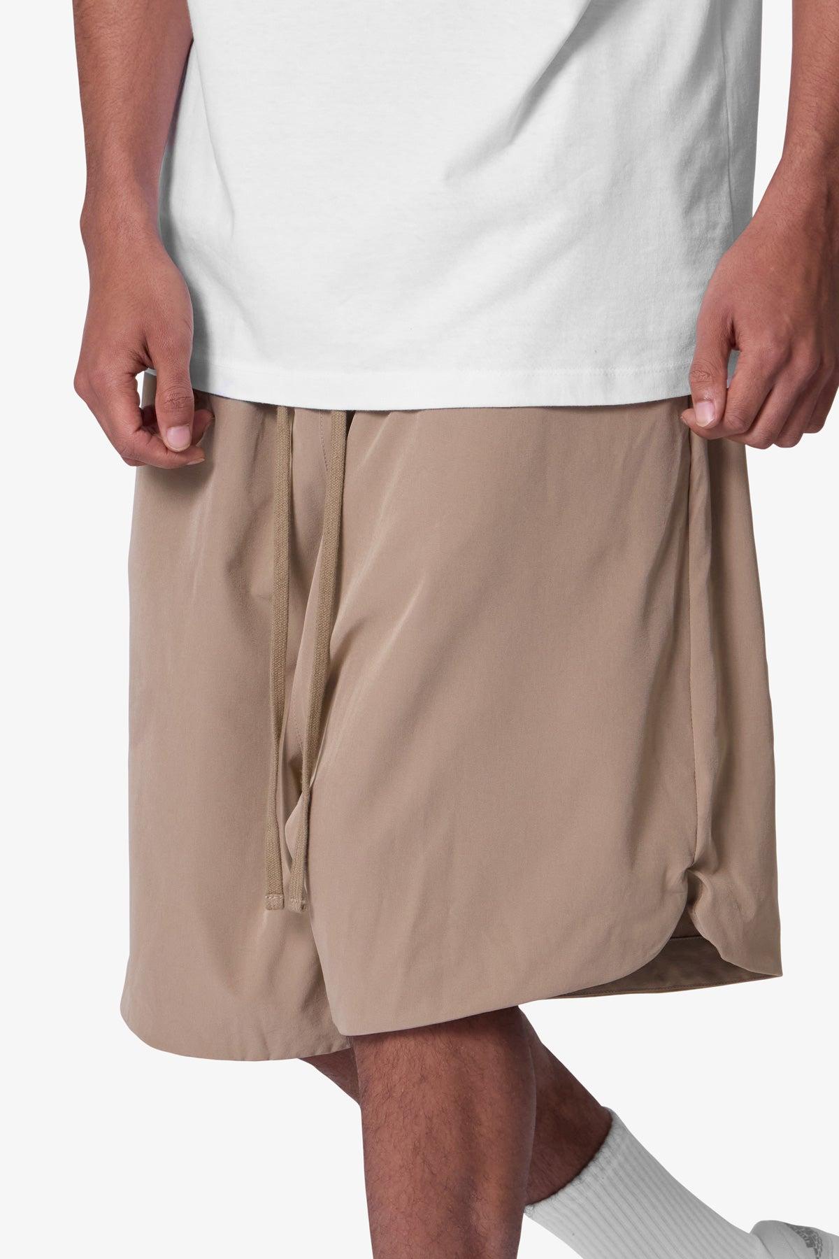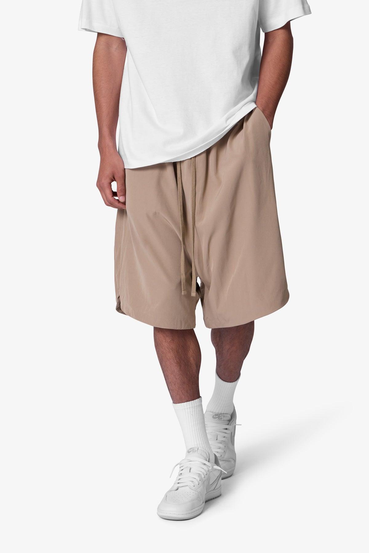 the Every Day Track Shorts are constructed with a custom-woven nylon fabric in a relaxed fit. The short feature an elasticized waist in self fabric, welt pockets at the outseam, and an internal cotton drawstring. details elasticized self waist with drawstring relaxed fit 100% nylon model is 6’1, 140 lbs and wears a siz