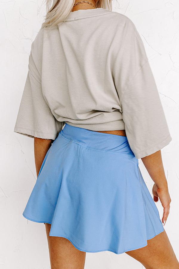 Put your best foot forward in our adorable sky blue 'Every Effort Athletic Skirt' featuring sleek lightweight material, an elastic waistline, and a flirty silhouette that ends in a straight upper-thigh length hemline! - Includes built in shorts. on products Measurements S : Hip 32", Inseam 3.5", Length 12.5", Waist 26-28". M : Hip 34", Inseam 3.5", Length 13", Waist 28-30". L : Hip 36", Inseam 3.5", Length 13.5", Waist 30-32".