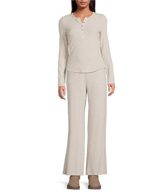 From Every, these pants feature: Knit fabrication Lounge silhouette Mid rise Side pockets Wide leg Full length Pull-on construction Approx. 29" HPS in length Rayon/spandex Turn garment inside out before machine washing on a cold and gentle cycle with like colors. Do not bleach. Lay flat to dry. Iron on reverse side, if needed. Imported.