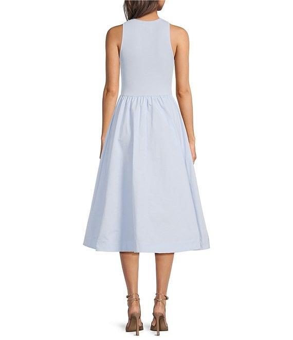 From Every, this dress features: Mixed media fabrication A-line silhouette Crew neckline Short sleeves Midi length Flounce hemline Pullover construction Approx. 49" HPS in length Bodice: nylon/rayon; dress skirt: cotton/polyester Hand wash Imported.