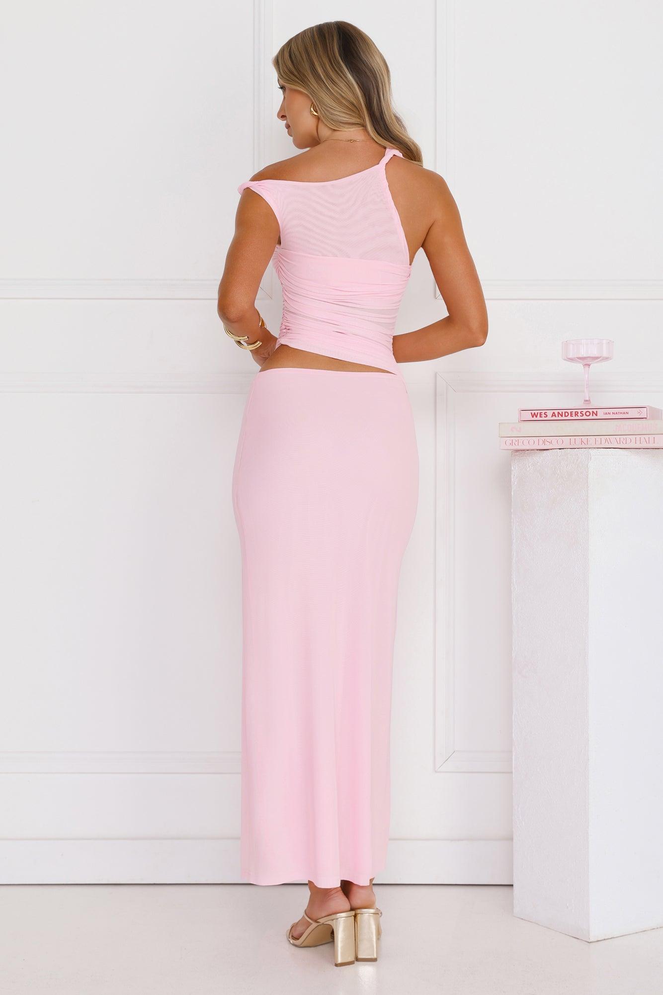 Everyday Pretty Off Shoulder Mesh Maxi Dress Pink