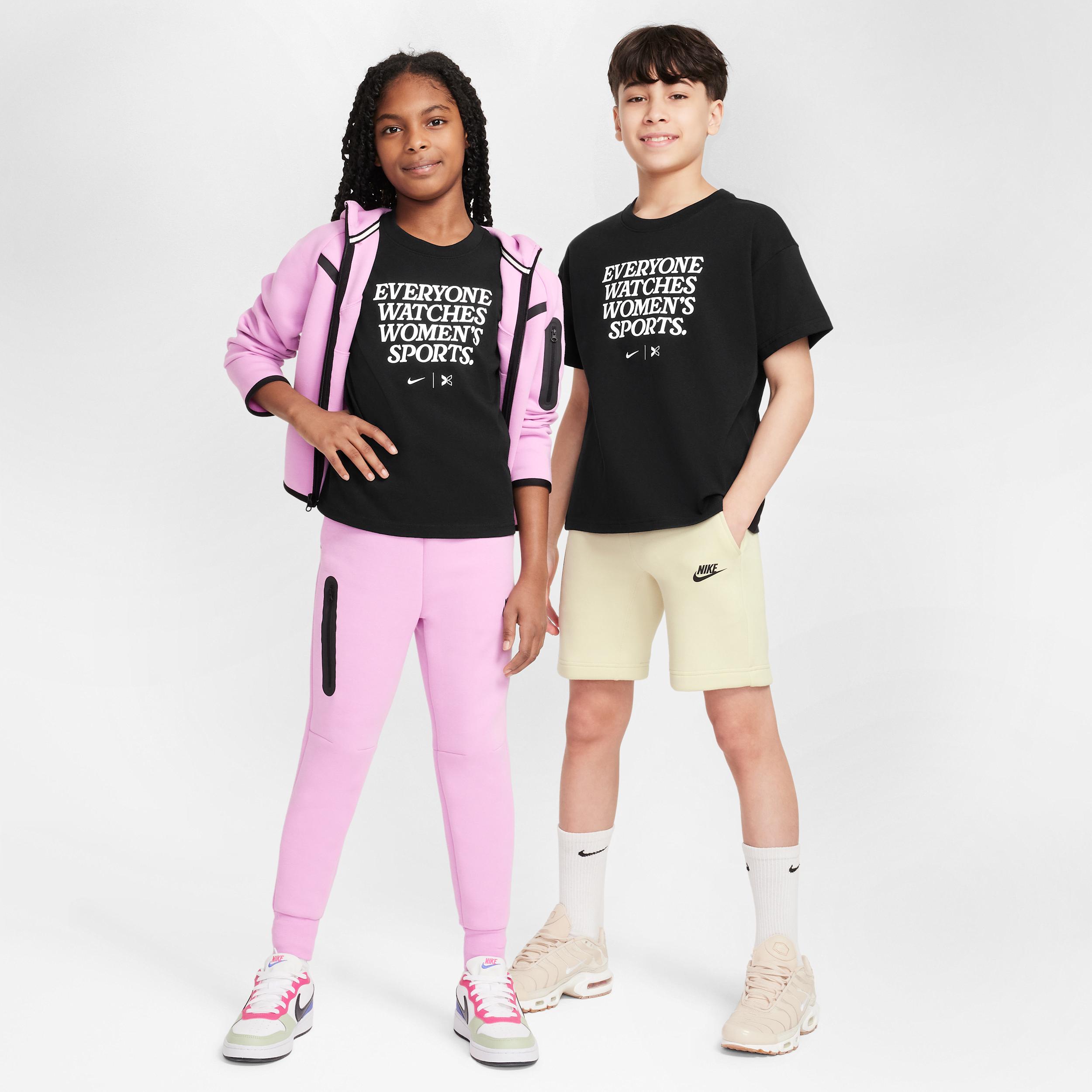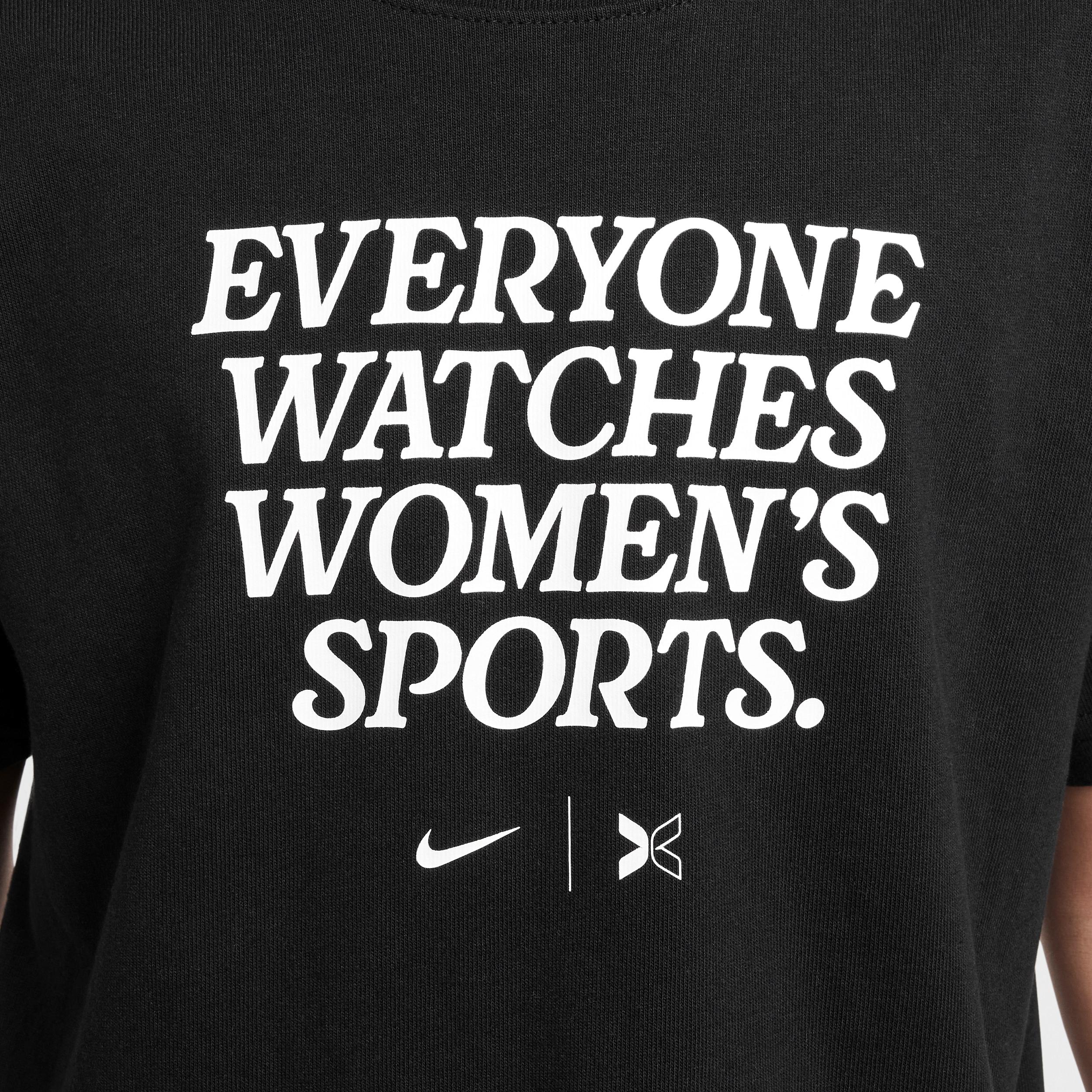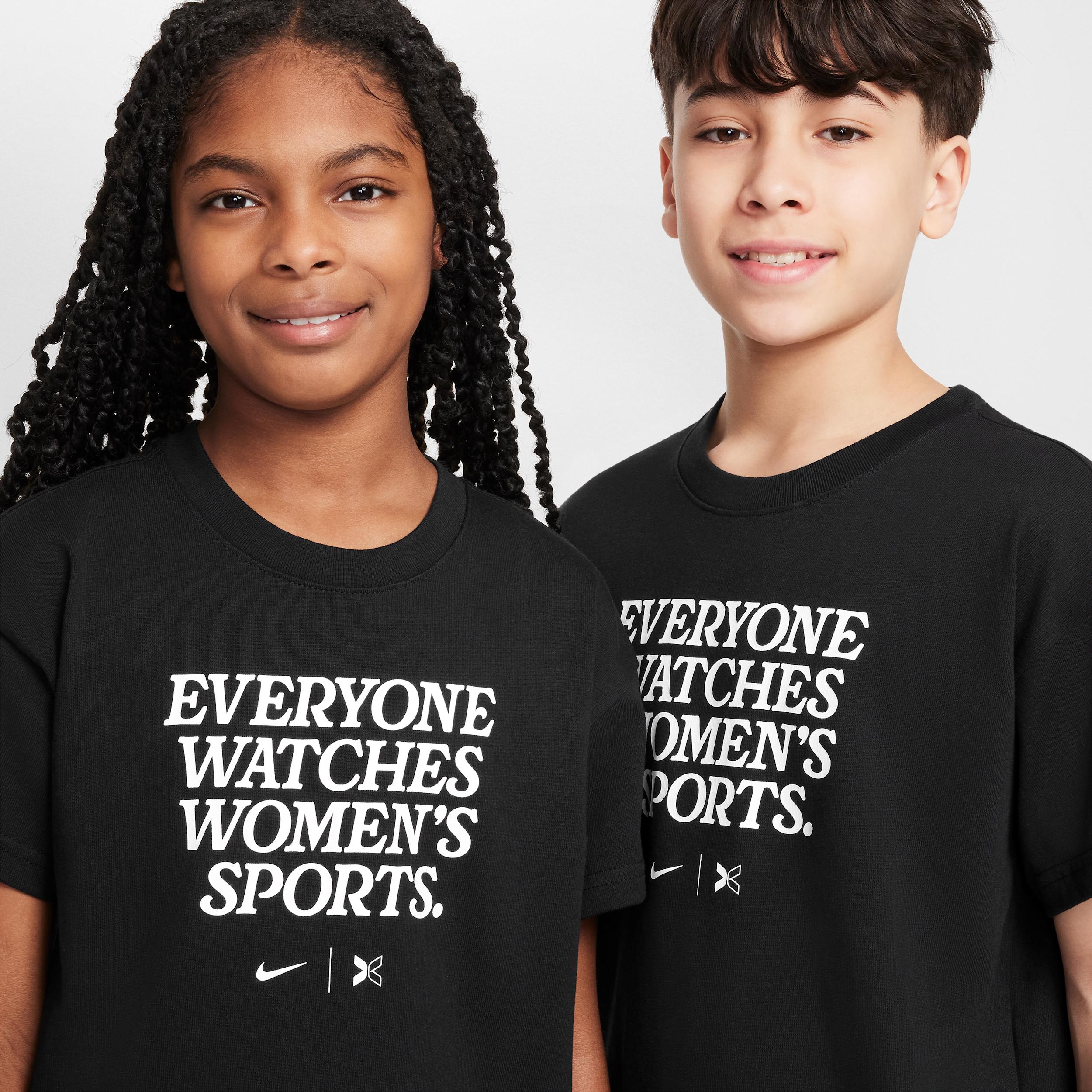 Made in collaboration with TOGETHXR, this soft and roomy cotton tee celebrates the unstoppable rise of women's sports. It's perfect for watching all your favorite games in comfort. [] Product Details:100% cotton. Printed graphics. Machine wash. Imported. Style: IM4259; Color: Black; Size: L; Gender: Unisex; Age Group: Kids | Everyone Watches Women's Sports⢠Nike by TOGETHXR Big Kids' T-Shirt in Black, Size: Large | IM4259-010