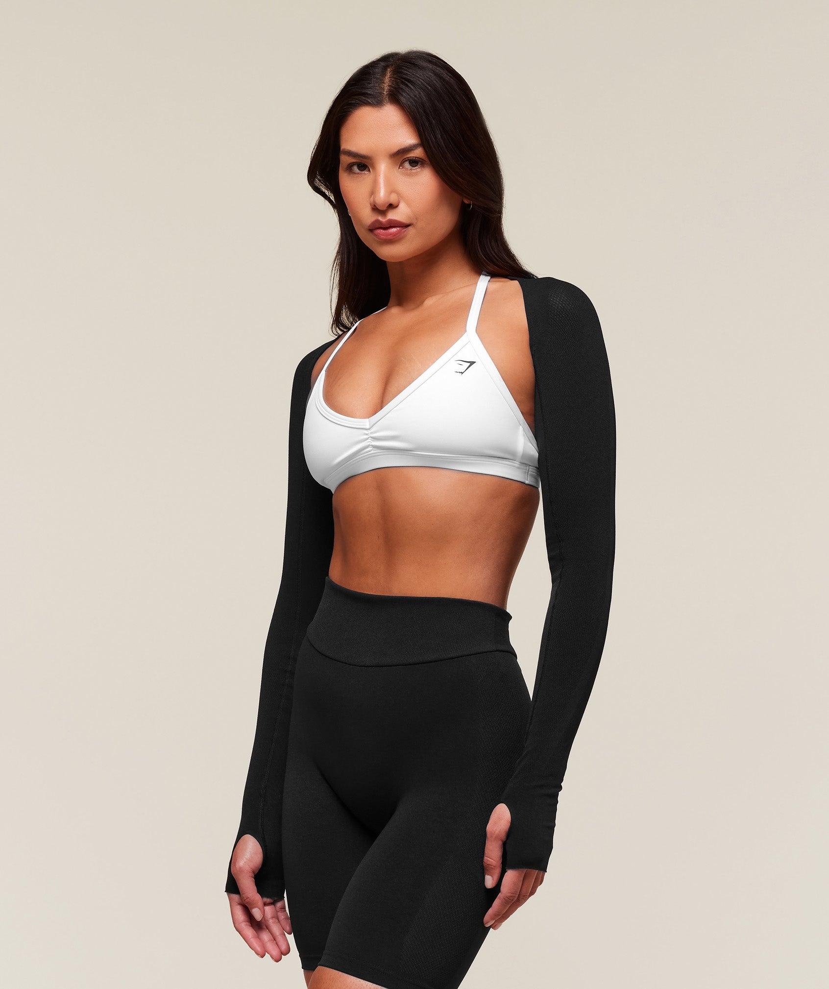 • Casually stylish shrug for a light cover up • Thumbholes to the sleeves so it stays put (plus they’re just comfy)• Flattering contouring to the sleeves• Comfy, second-skin feel thanks to soft, lightweight fabric and zero seams• Knitted structure that contours your body just the way you want it • Body-mapping eyelet details are knitted into the fabric, giving you breathability where you need it most• Eyelet detailing to front and jacquard detailing to back• Subtle Gymshark wordmark to the hem