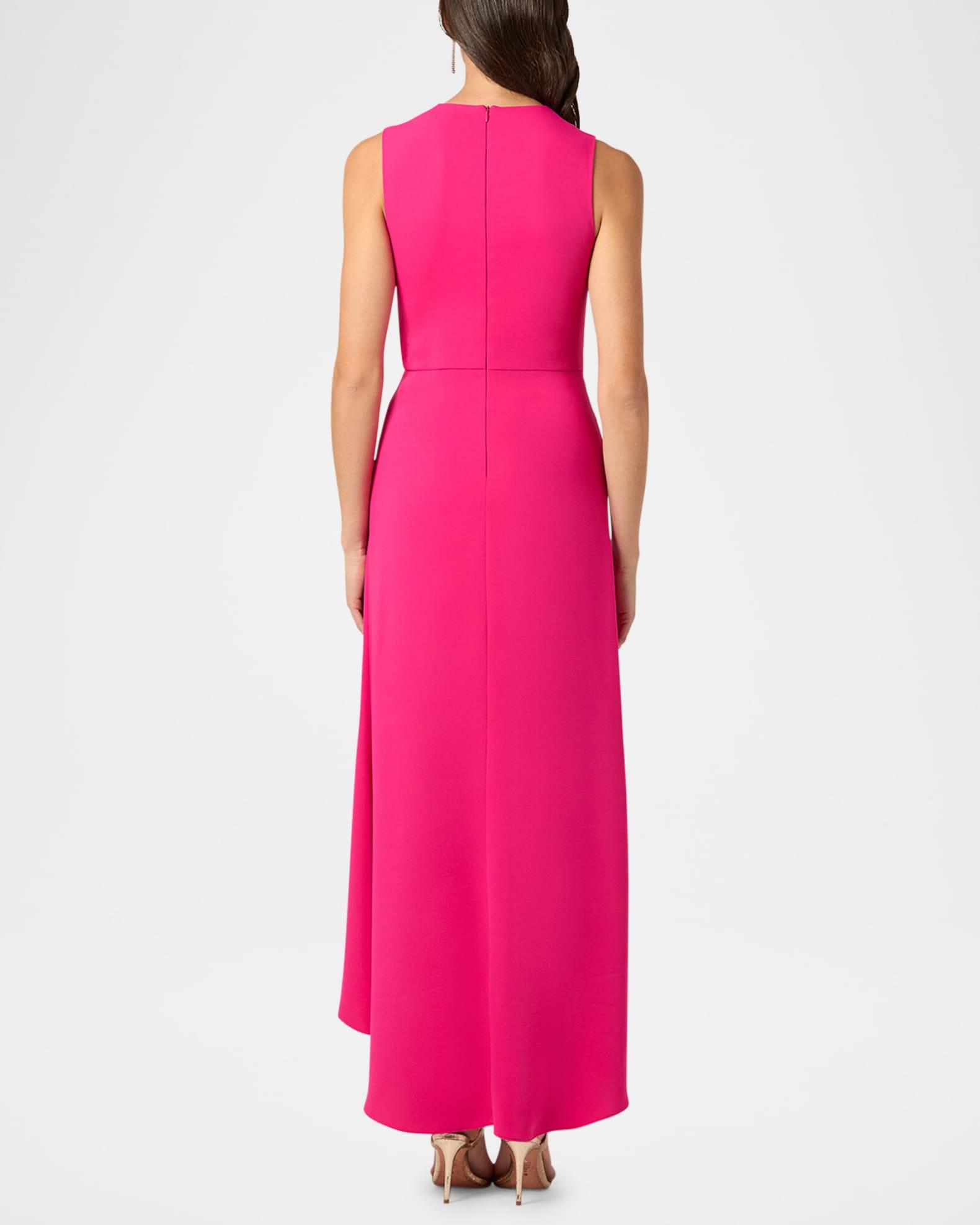 Shoshanna "Evie" maxi dress features a pleated waist gathering and fluttering side drape Approx. 58"L from shoulders to hem Jewel neckline Sleeveless High-low hem Full length A-line silhouette Invisible back zipper Polyester Dry clean Made in the USA from imported materials