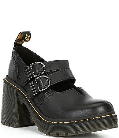 Embrace edgy ensembles with the Eviee pumps from Dr. Martens. These shoes feature a classic silhouette but are elevated by a standout platform, a chunky heel, and eye-catching details. The intricate stitching, Mary Jane-inspired double strap closure, and bold style makes this pair a unique addition to your collection.