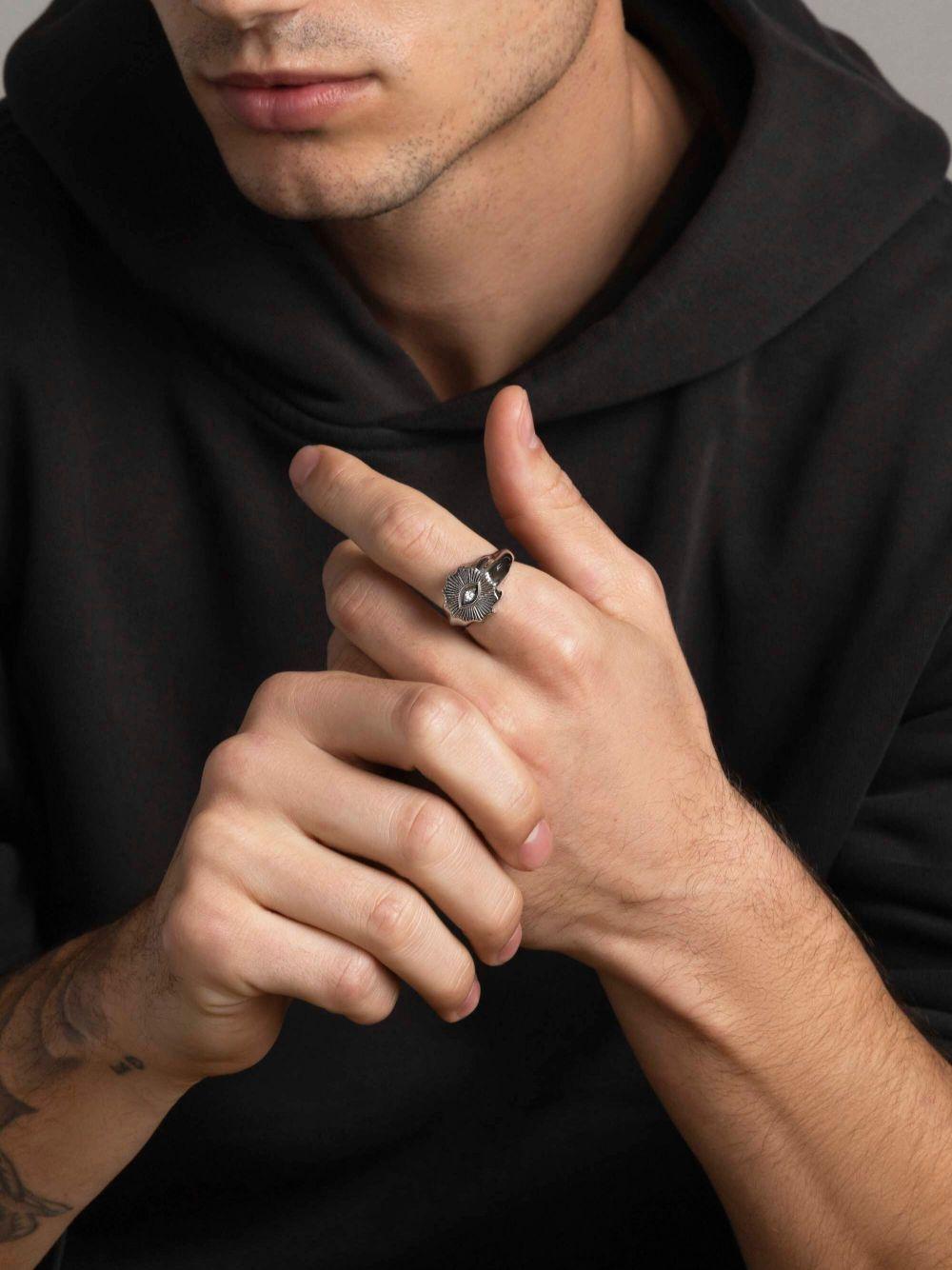Nialaya Jewelry Evil Eye crystal ring | Silver | Cubic Zirconia/stainless steel | Rings | Jewelry | Men