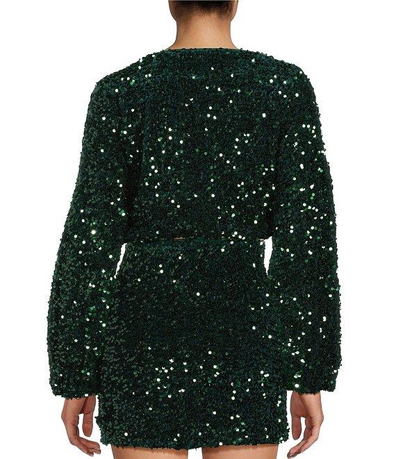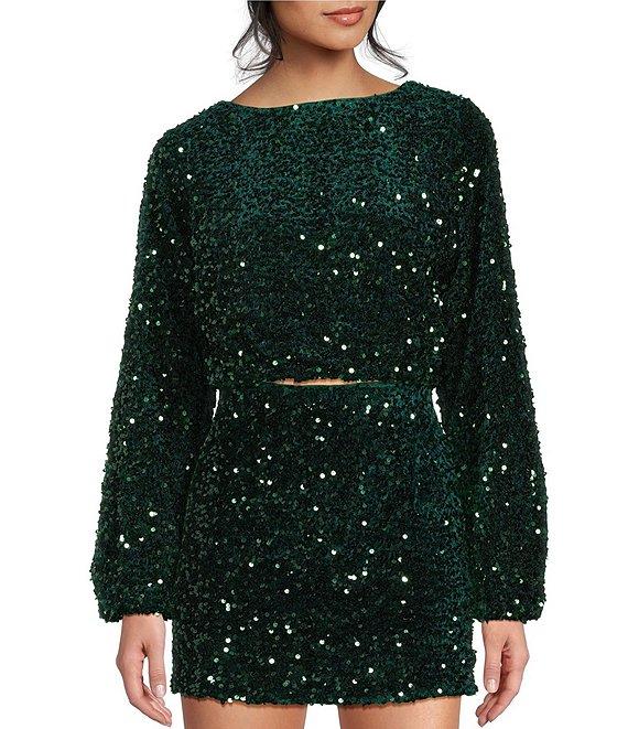 From Evolutionary, this top features: Allover sequins Scoop neckline Long sleeves Relaxed, cropped fit Pullover styling Elastic hem Polyester/spandex Hand wash Imported.