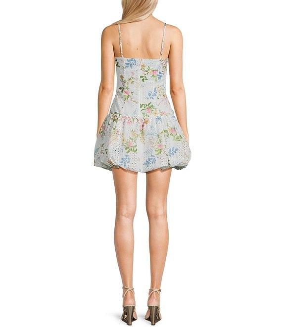 Evolutionary Eyelet Floral Print Spaghetti Strap Bubble Dress