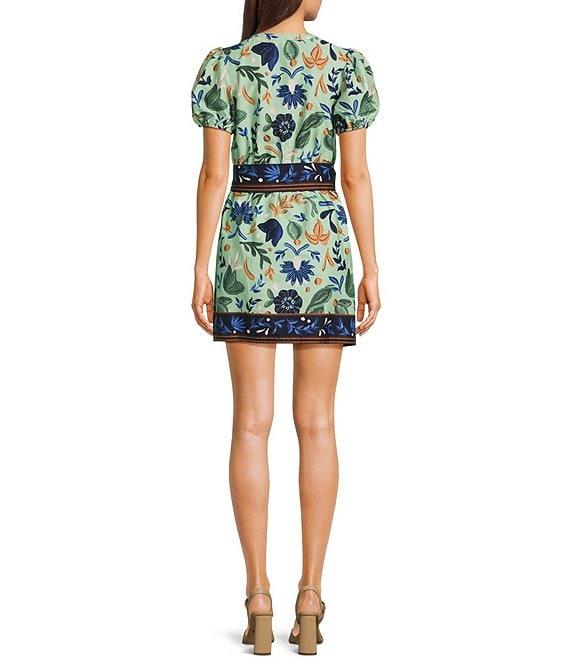 From Evolutionary, this dress features: All-over floral print Split v-neckline Short sleeves Full button-front placket Contrast-printed sash Full, pleated skirt with contrast-printed hem Pullover styling Cotton/spandex Machine wash/tumble dry Imported.