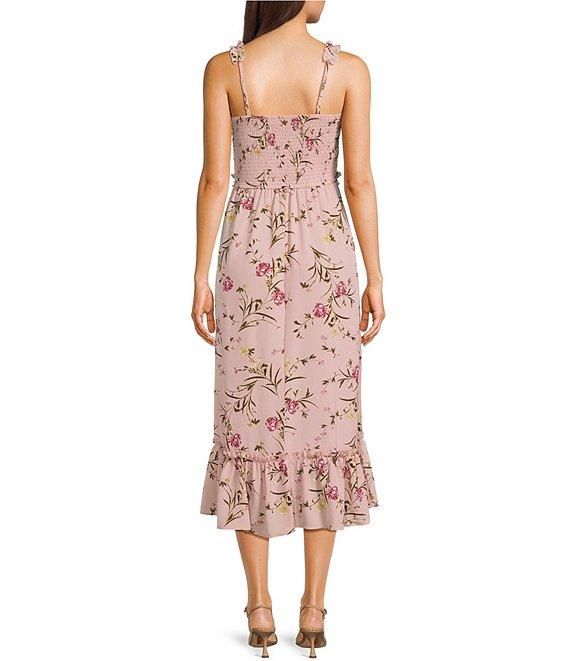 Evolutionary Floral Print Sweetheart Neck Spaghetti Strap Dress