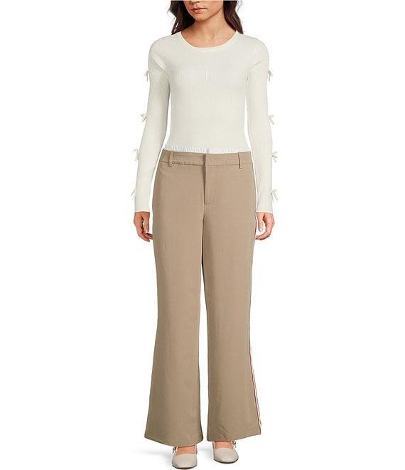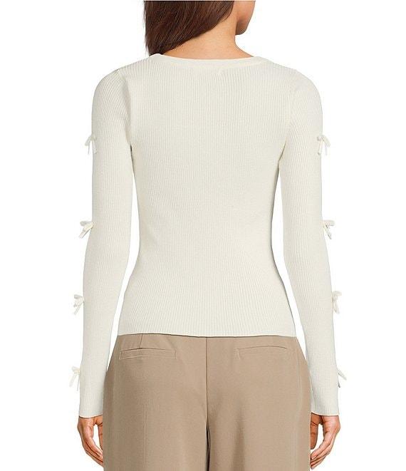 From Evolutionary, this top features: Round neckline Long sleeves with bow details Straight hem Pullover styling Rayon/polyester/nylon Machine wash/dry flat Imported.