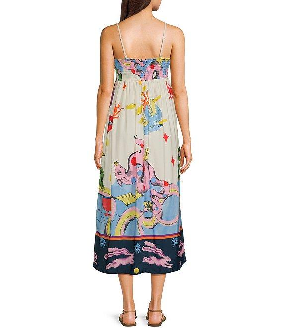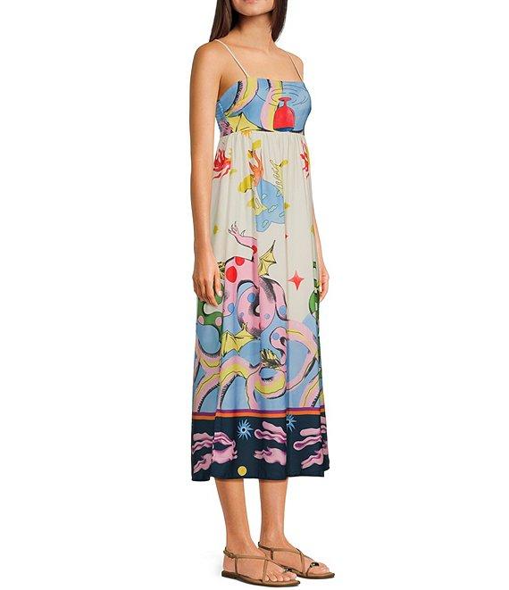 Evolutionary Sleeveless Spaghetti Strap Linen Texture Print Dress