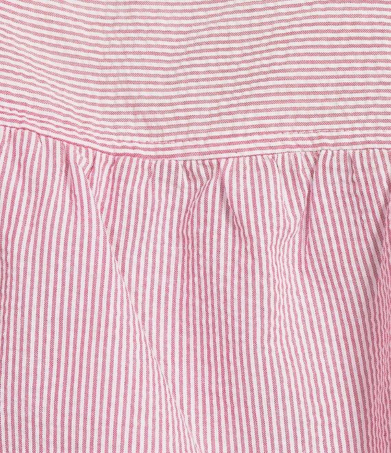 From Evolutionary, this top features: Horizontal/vertical-stripe pattern Square neckline Sleeveless Adjustable spaghetti straps Ricrac trim Tie back Polyester/cotton Machine wash/line dry Imported.