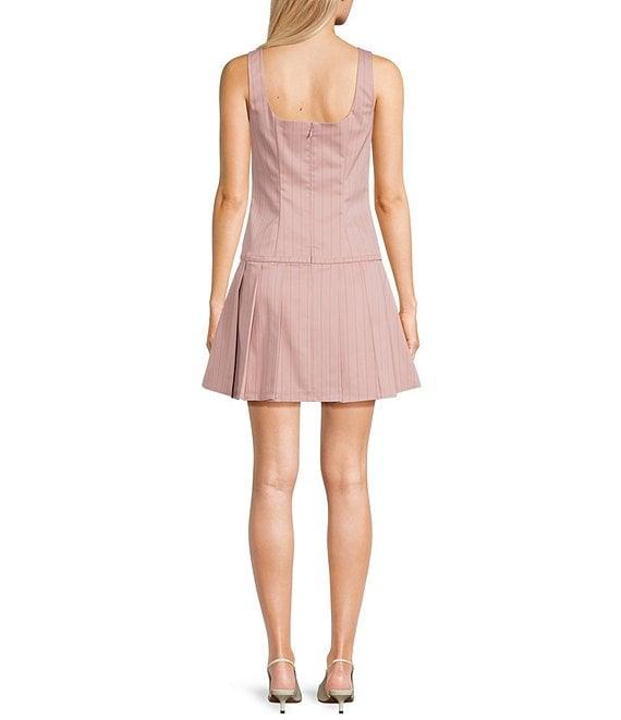 Evolutionary Twill Pleated Stripe Square Neck Drop Waist Dress