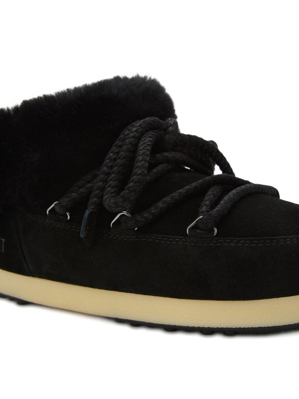 Moon Boot EVX fur-trimmed boots | Black | black | fur trim | lace-up fastening | round toe | flat sole | Synthetic Rubber/Bovine Leather/Sheepskin/Polyester/Sheepskin | Rain Boots | Boots | Shoes | Men | Rain & Snow Boots | Boots | Shoes | Women