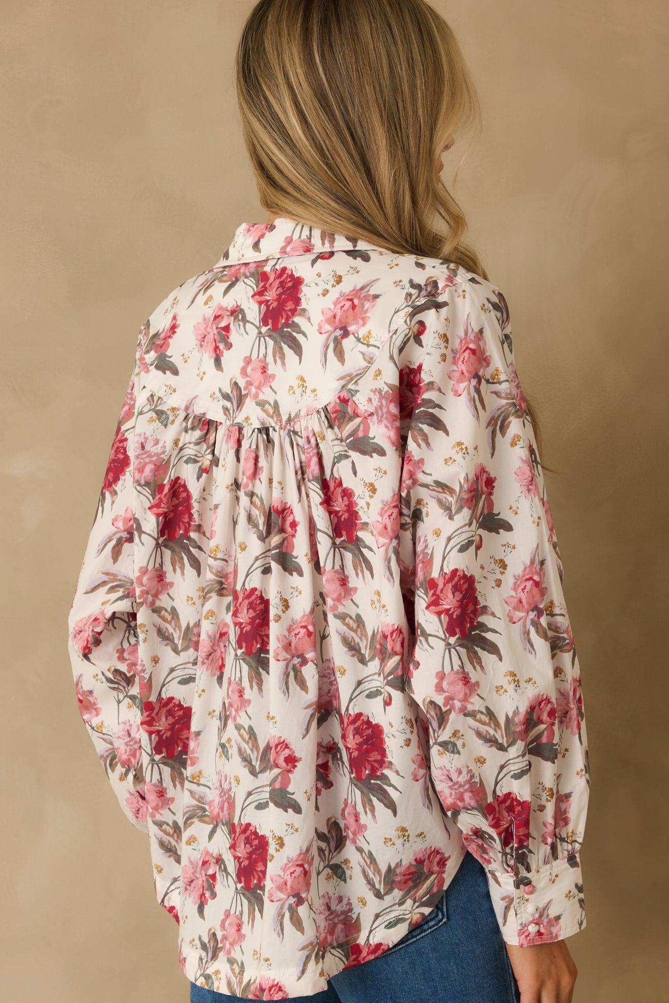 The Exactly The Vibe Pink Multi Floral Print Cotton Button Front Top captures that effortless balance between laid-back and put-together. It’s an instant mood lift, the kind of piece that always feels like the right call. This top features a pink multicolor print, collared neckline, functional button front, long puff sleeves, functional button cuffs, scoop bottom hem, and a relaxed fit. 100% Cotton Unlined Hand Wash Cold Manufactured in China Designed in The USA Model is Wearing a Size Small