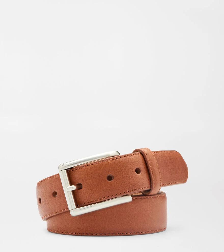 Crafted in the U.S. from soft textured leather this belt is the perfect accent to a refined casual look. Finished with an adjustable buckle closure.