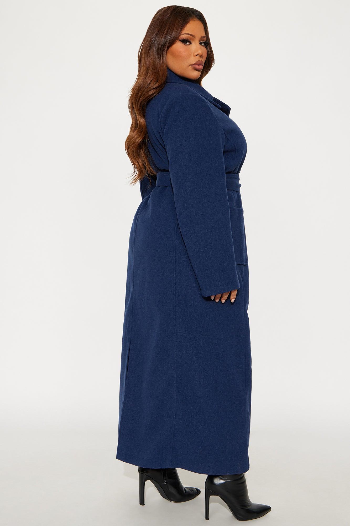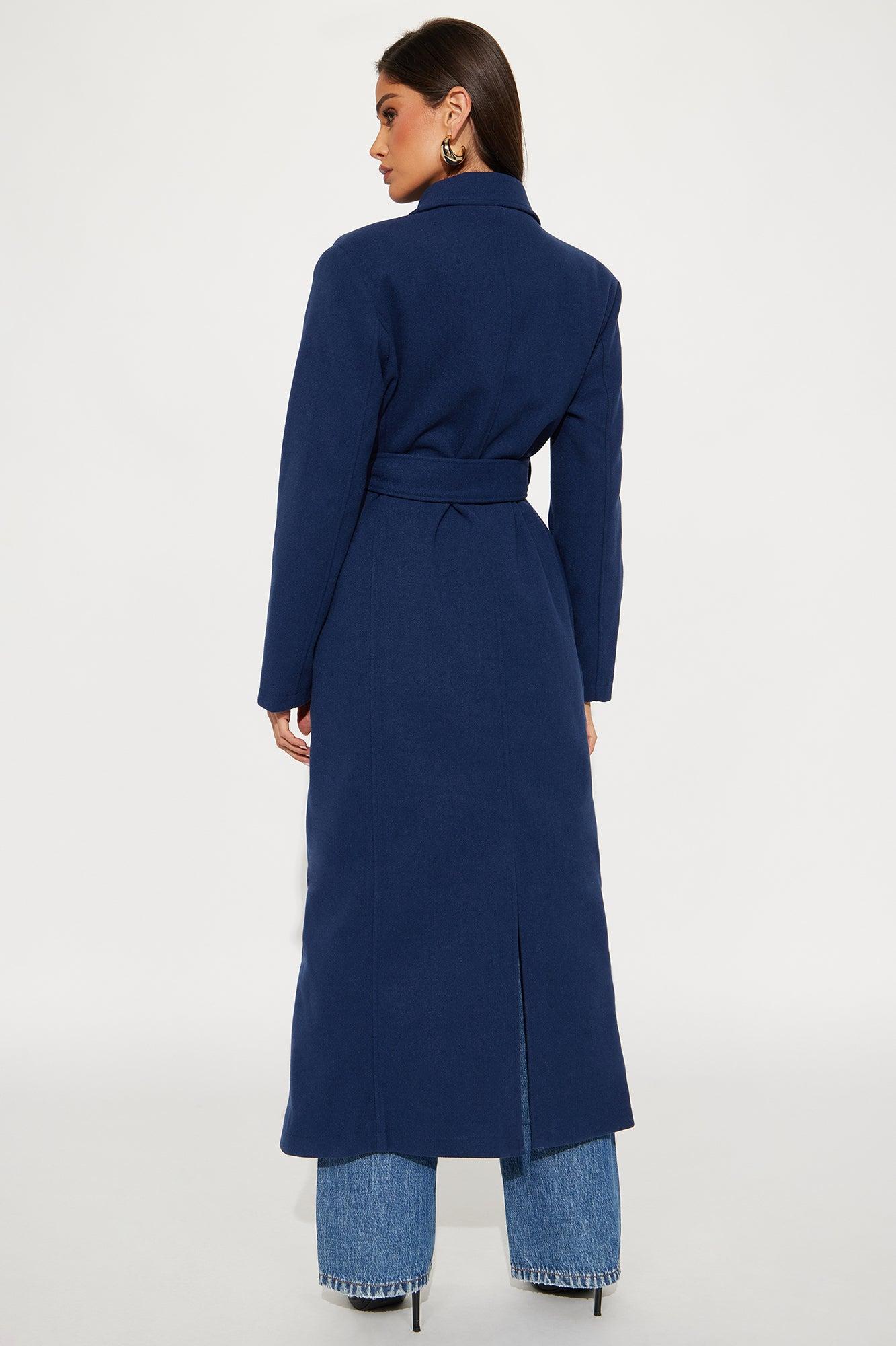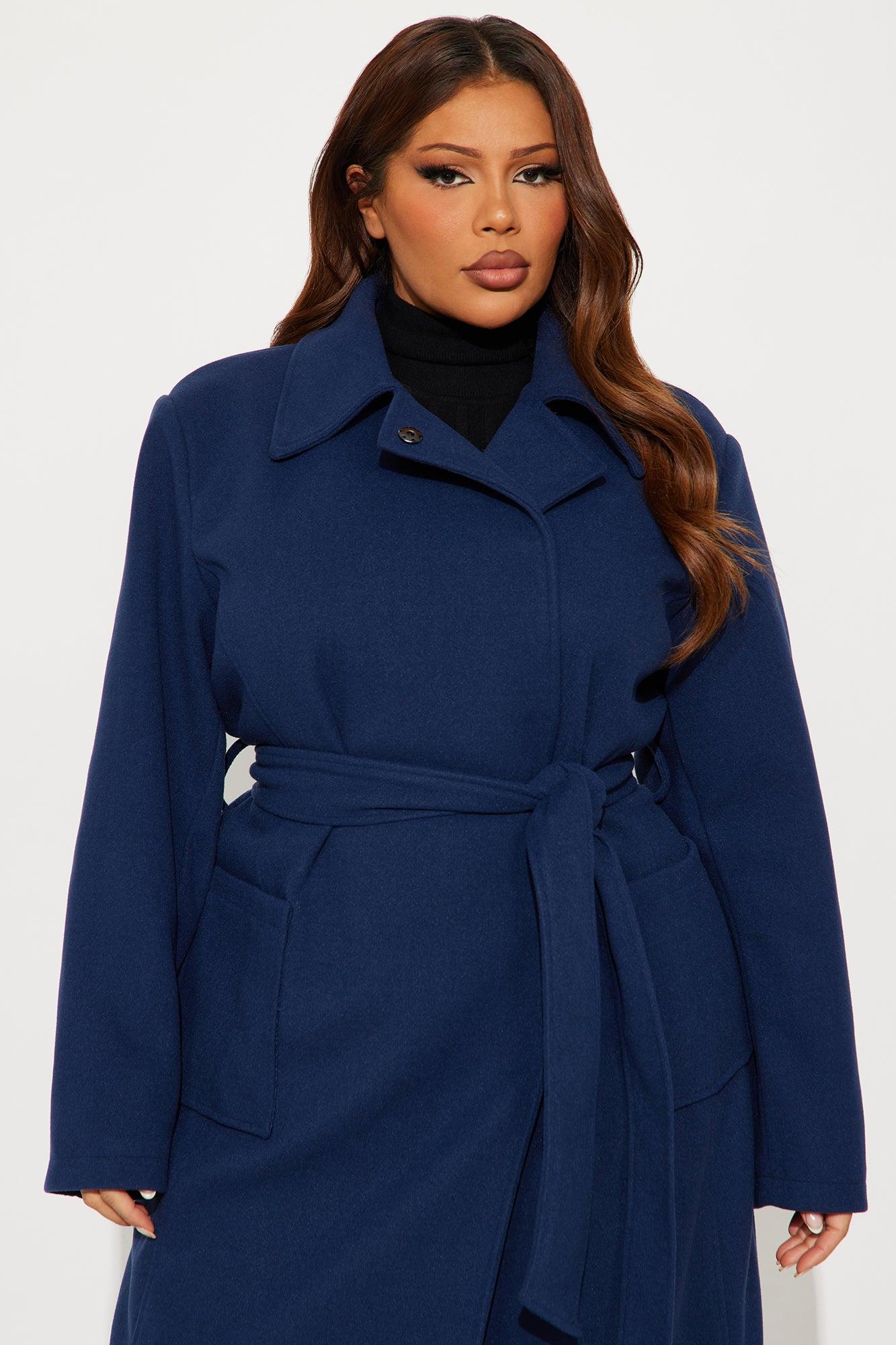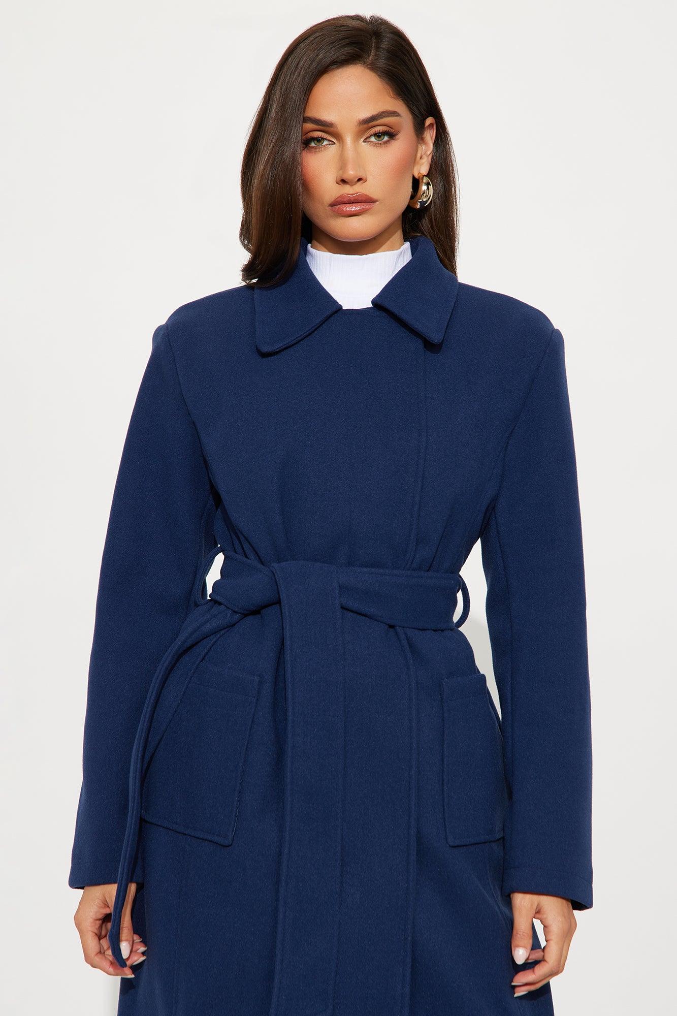 Available In Brown And Navy. Coat Collar Neckline Long Sleeves Shoulder Pads Button Closure Belted Pockets Back Slit Fully Lined Self/Lining: 100% Polyester Imported California Proposition 65WARNING: Cancer and Reproductive Harm - www.P65Warnings.ca.gov.