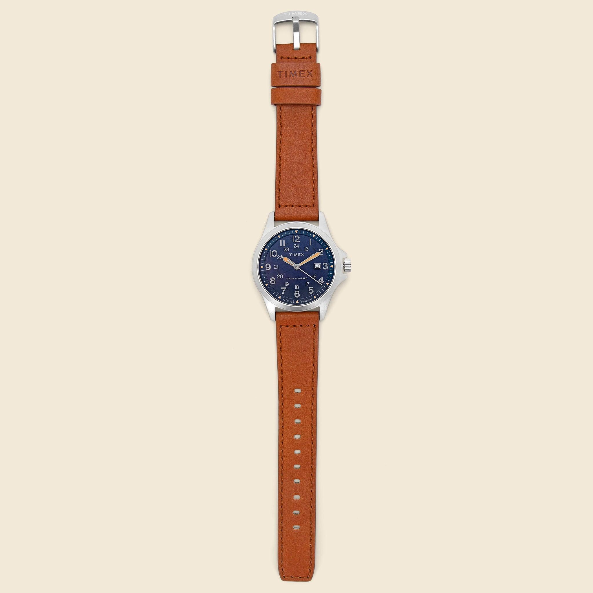 Inspired by military-issue field watches from the past few decades, this Expedition Watch from Timex does more than just look the part. Featuring a sturdy crown and screw-down case back, this watch has a new-age, solar-powered movement so you won’t have to worry about batteries ever again. Finished with a tan leather strap, impressively tough anti-reflective sapphire crystal case front, and 100 meters of water resistance. Stainless steel watch case Solar-powered movement Water-resistant up to 100 meters Interchangeable fabric double layer slip-thru strap Leather strap with 20mm lug width ‘QuickDate’ easy-to-set date Sapphire crystal case front One size Materials: stainless steel, sapphire crystal, leather strap Measurements: 41mm watch face | 12mm case height | 20mm strap and lug width