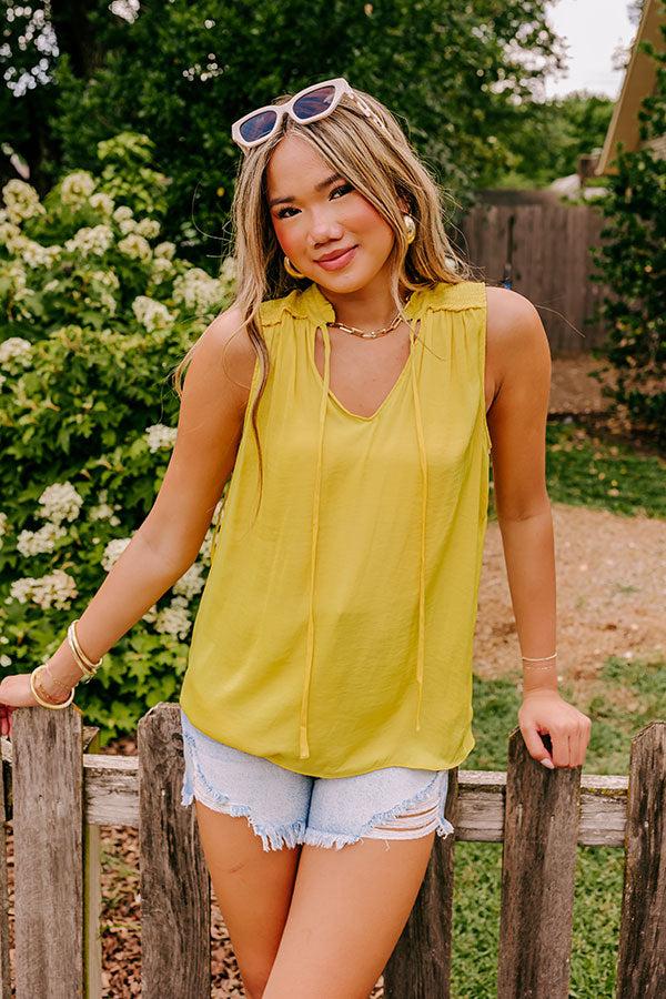 There'll be no need to put extra effort into your look when you wear this darling yellow shift top featuring lightweight material, a collared v-cut neckline with a tie closure, and a slouched silhouette that falls into a rounded hemline! Measurements S : Bust 36", Hip 38", Length 27", Waist 37". M : Bust 38", Hip 40", Length 27.5", Waist 39". L : Bust 40", Hip 42", Length 28", Waist 41".