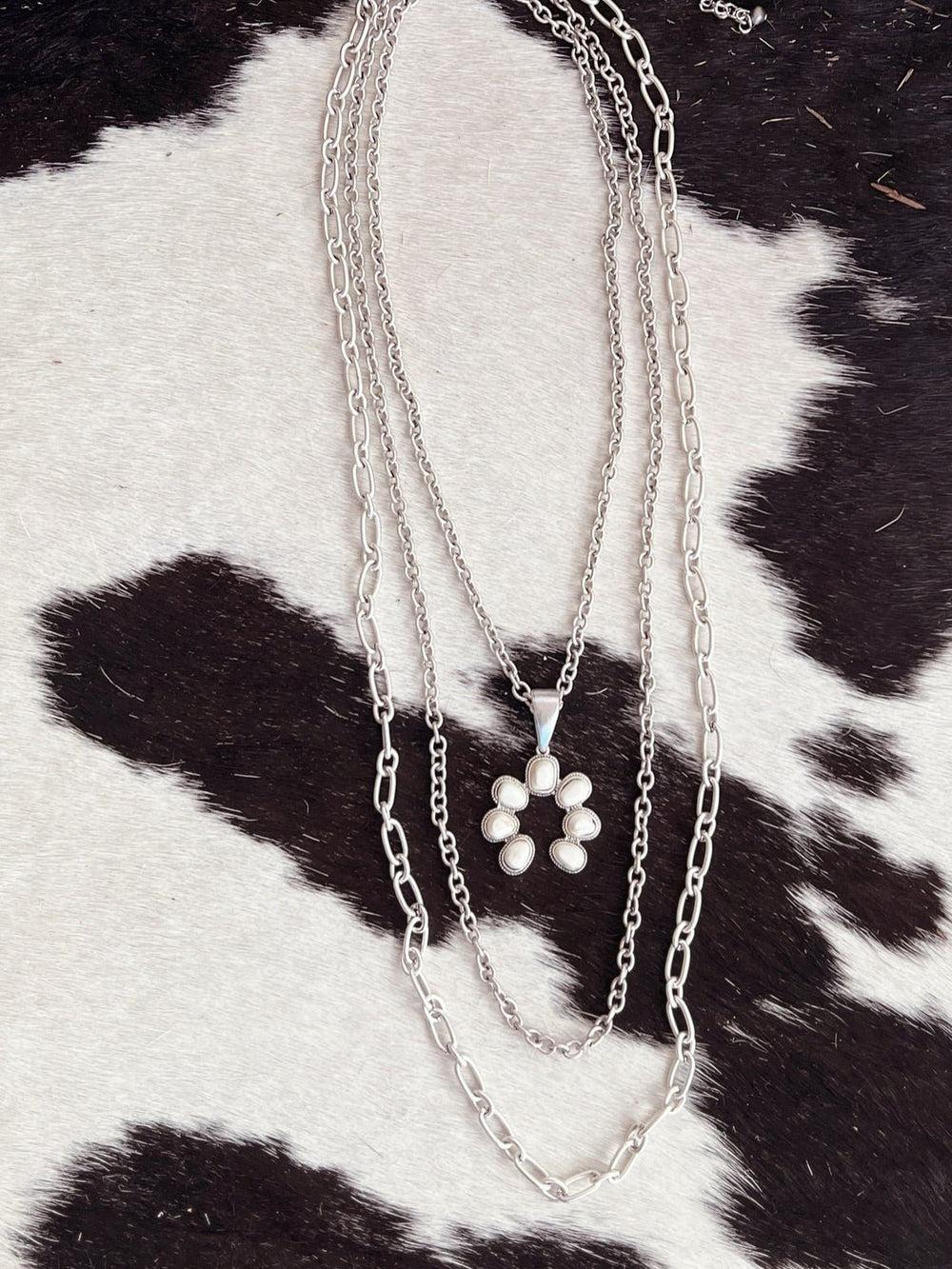 Extra Long 3-Strand Chain And White Pendant Necklace | Gussied Up Online BoutiqueIntroducing our Extra Long 3-Strand Chain And White Pendant Necklace! Eleva...