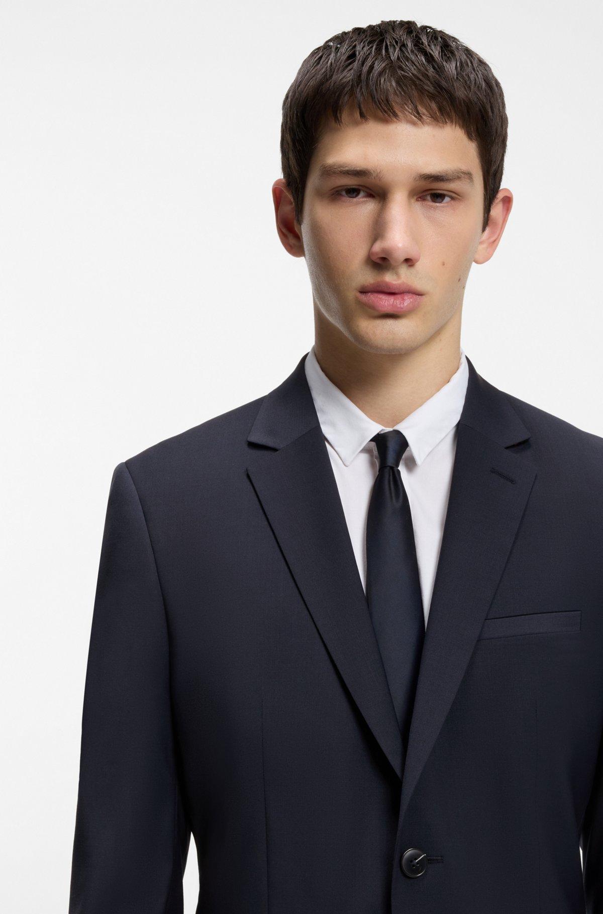 In performance-stretch cloth made with wool, this HUGO Menswear blazer is an everyday must. Super-slim fit. Plain weave for easy styling.