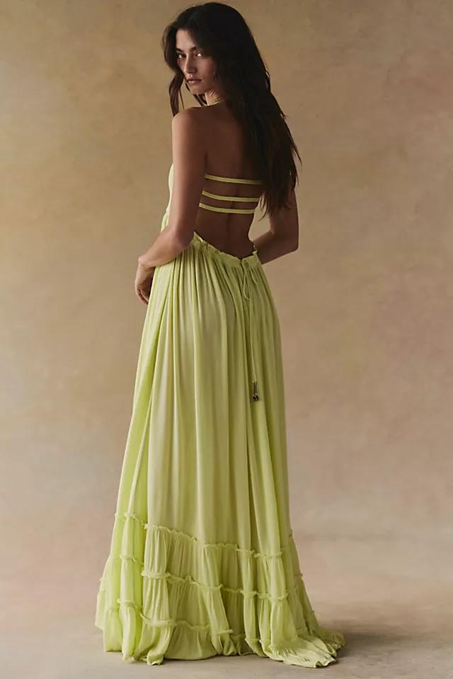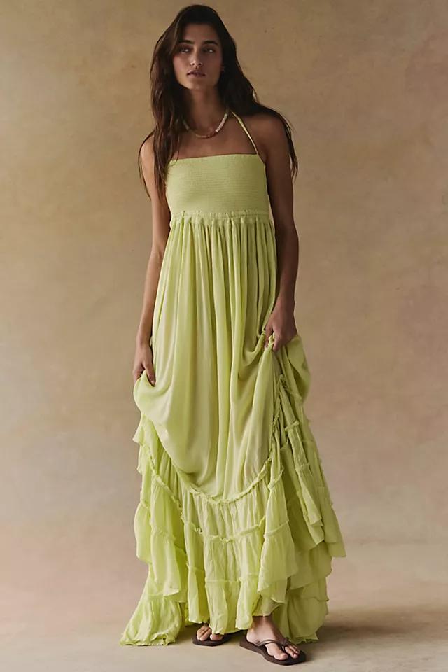 Crinkly strapless maxi dress, made from our sheer and gauzy free-est fabric, with a stretchy smocked bodice, halter neck tie, and low strappy back. Raw seam detailing on the hem. Throw on top of a bikini or layer over one of our seamless styles for an effortless look.