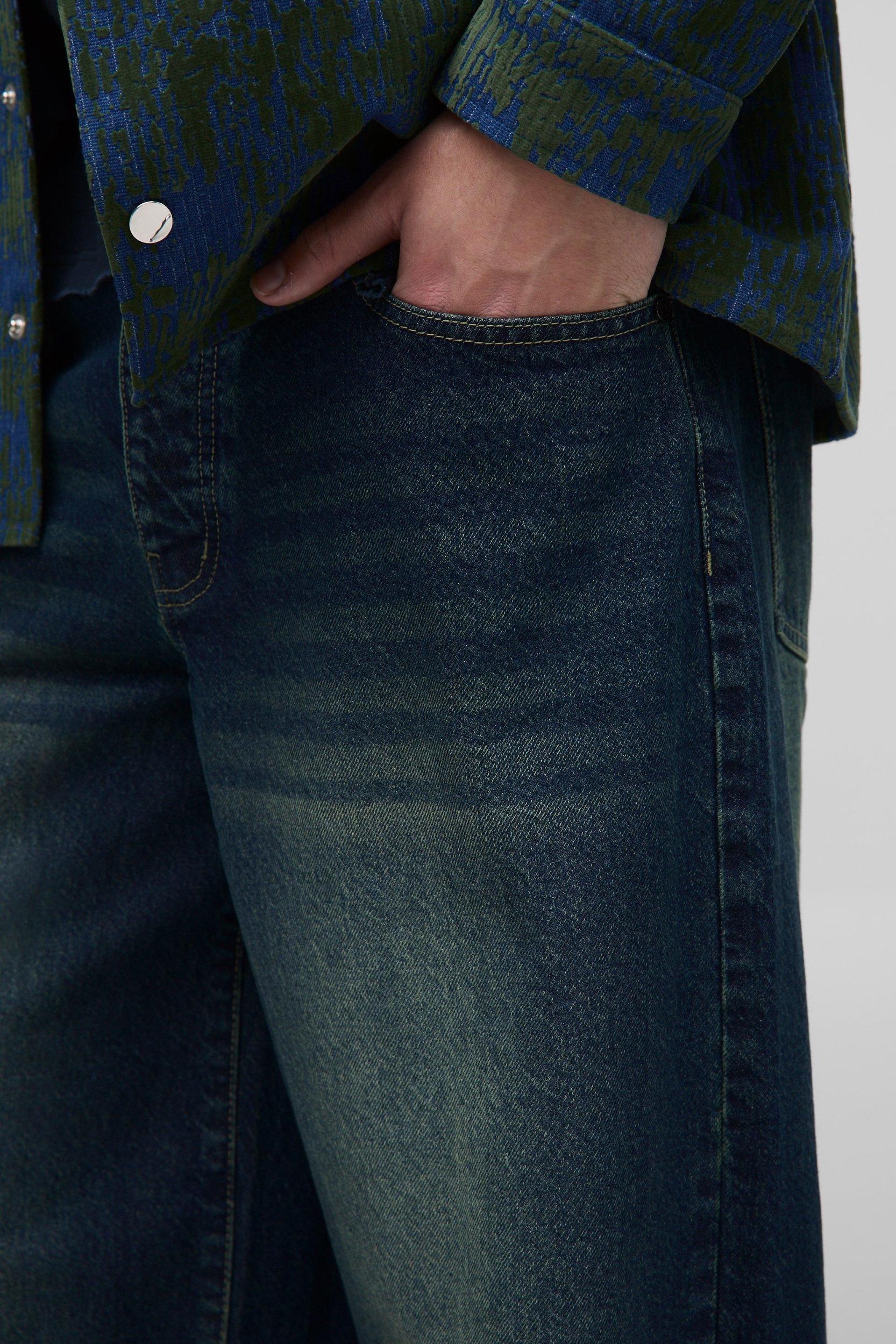Extreme Baggy Rigid Petrol Tinted Washed Jeans | boohooMAN USA Product Image