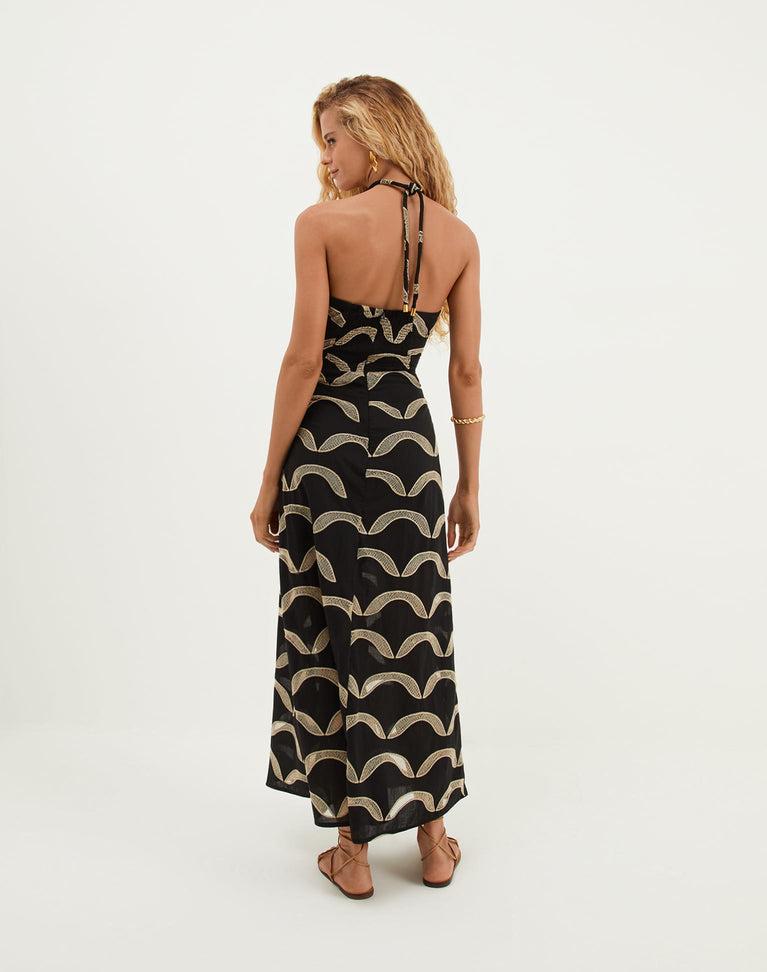 The ViX Eyelet Aila Long Dress is a sleeveless silhouette with a V-neck and delicate front keyhole just below the bust. Designed for comfort, it features a smocked back and a flowy straight skirt that moves effortlessly. The dress is finished with tie closures at the neck for a customizable fit. Style the Aila Long Dre